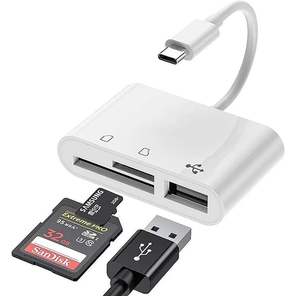 Comprar Lector de Tarjetas de Memoria para Dispositivos, Adaptador con USB Tipo C para TF CF SD, OTG, Flash Compacto para IPad Pro, Huawei, Macbook