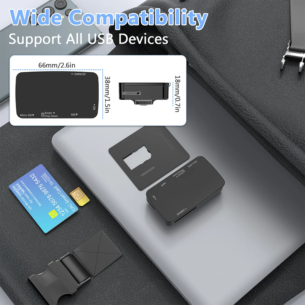 Tipo de tarjeta compatible: MMC, SIM, ID, CAC, DNIE, ATM, IC, Smart, SD / MMC, Micro SD, MS, M2