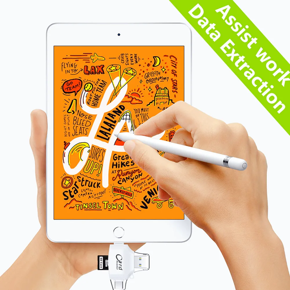 4 en 1 OTG iluminación USB C lector de tarjetas para iPhone/ iPad/ Mackbook/ Android/Cámara.