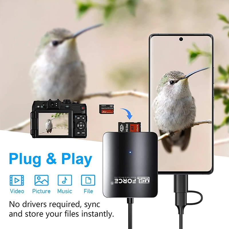 El lector de tarjetas multifunción es perfecto para transferir archivos desde su teléfono, cámara, tarjetas de memoria digital GoPro a su PC y viceversa.¡Simplemente conéctelo a un puerto USB o USB tipo C disponible!