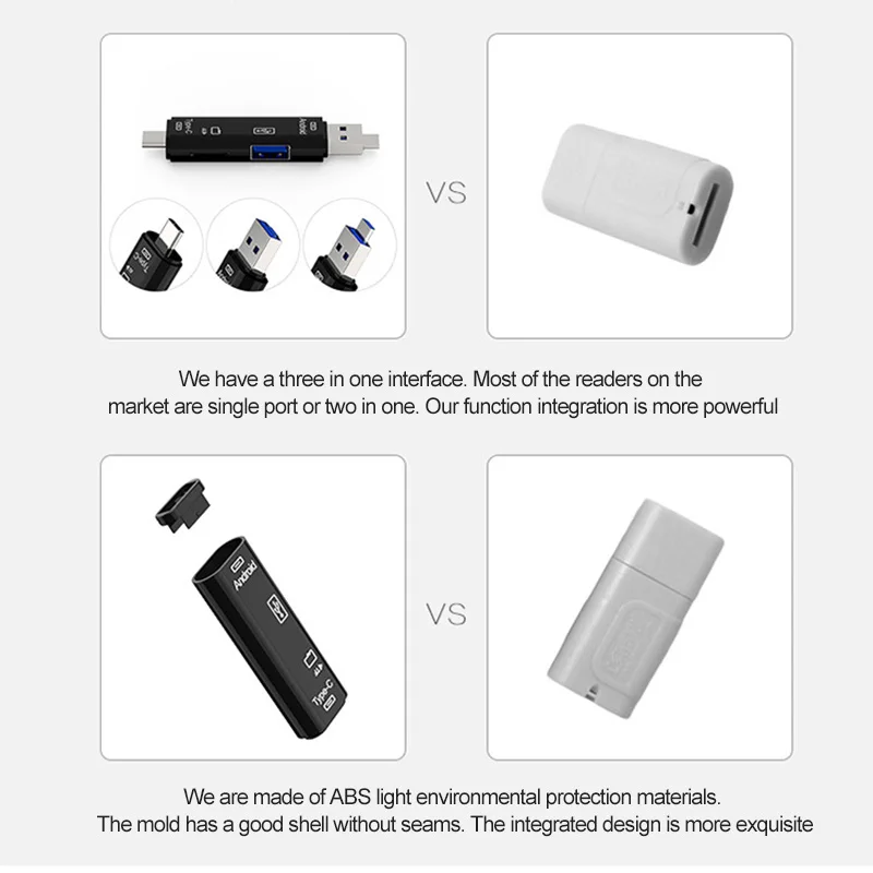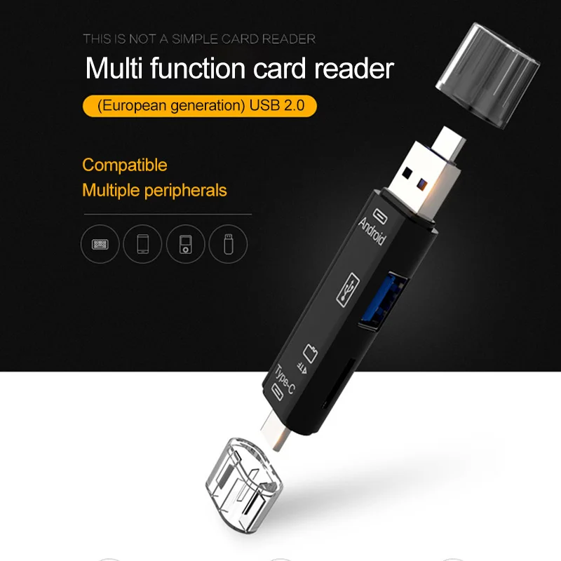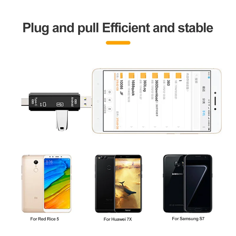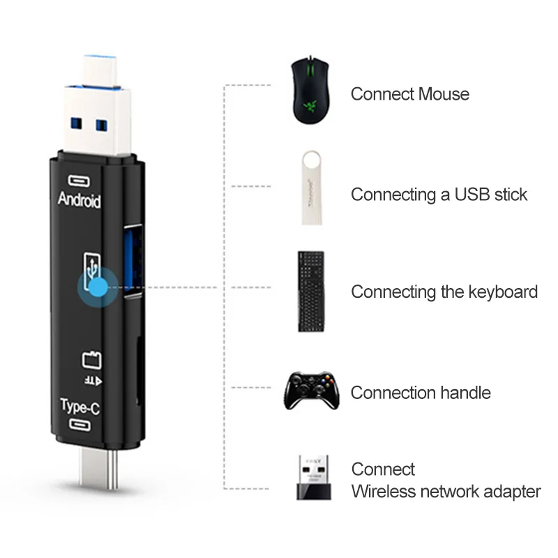El lector de tarjetas tiene una función 5 en 1, que admite transmisión de alta velocidad de tarjetas Micro USB, USB3.0, Type-C y TF, que tiene una amplia gama de usos.