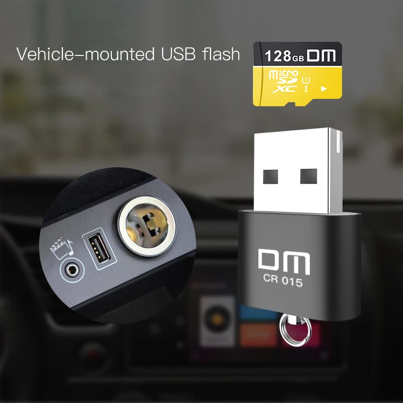 Lector de tarjetas Micro SD DM CR015 con innovador ranura para tarjetas TF, cambia el lector de tarjetas en una unidad flash USB para computadora o para automóvil