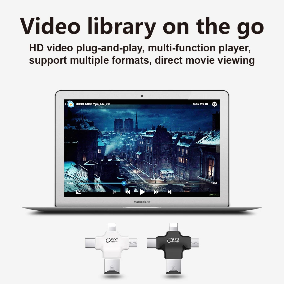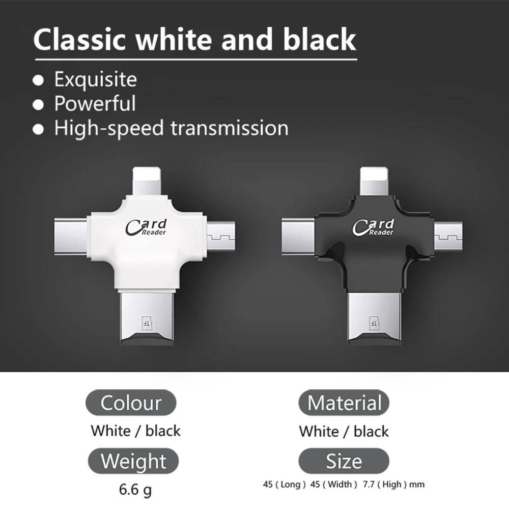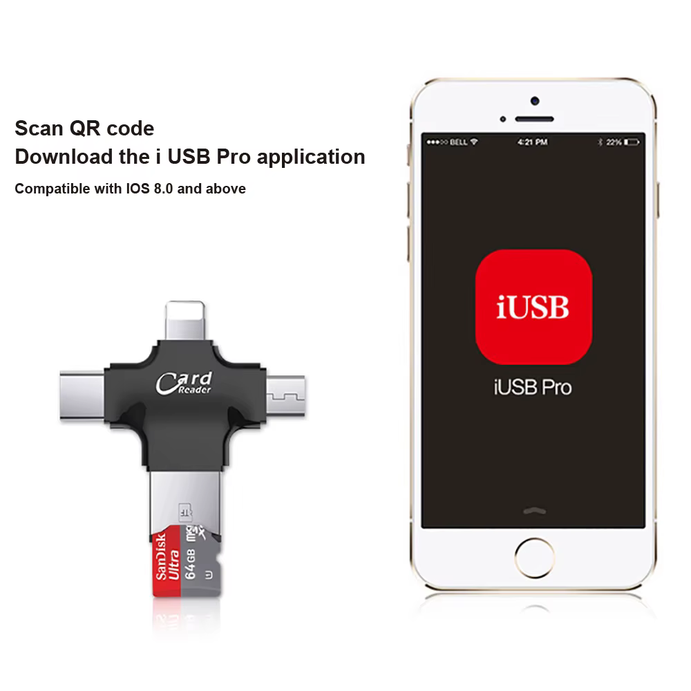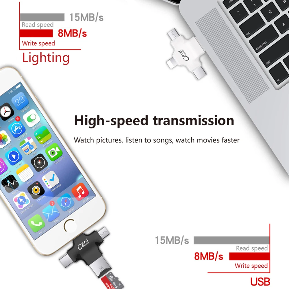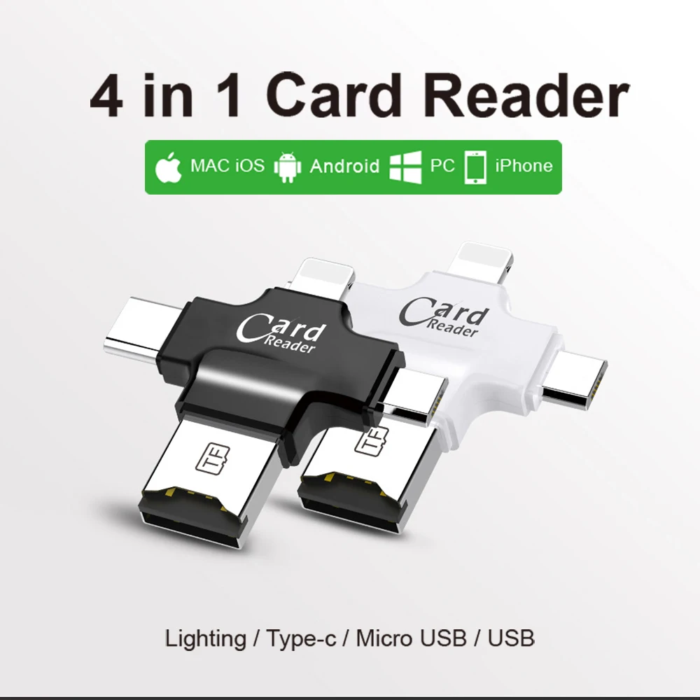 4 en 1 OTG iluminación USB C lector de tarjetas para iPhone/ iPad/ Mackbook/ Android/Cámara.