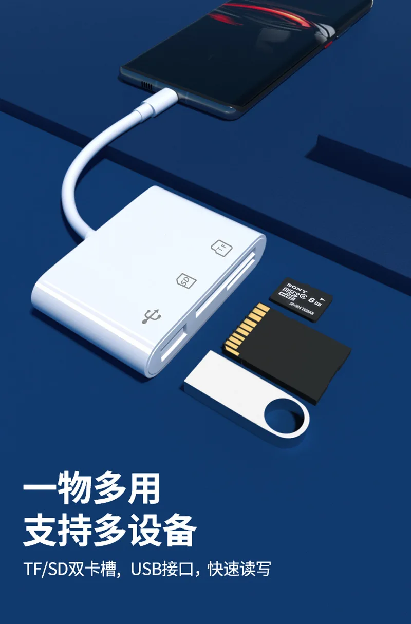 Comprar Lector de tarjetas Micro tipo C para IPhone, lector de tarjetas de memoria SD TF, compatible con IOS14, IPhone 6/7/8/X/XR/11/12
