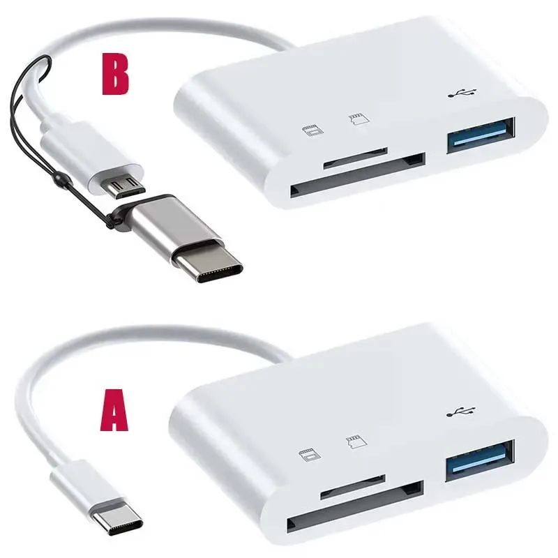 Comprar Lector de tarjetas Micro USB tipo C, carga de teléfono Android, concentrador OTG 2,0 para Macbook, portátil, PC, Micro SD, TF, adaptador de tarjeta de memoria de disco USB