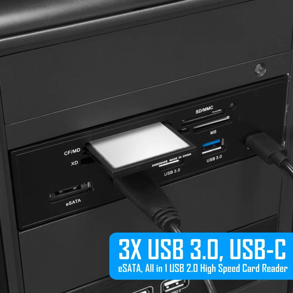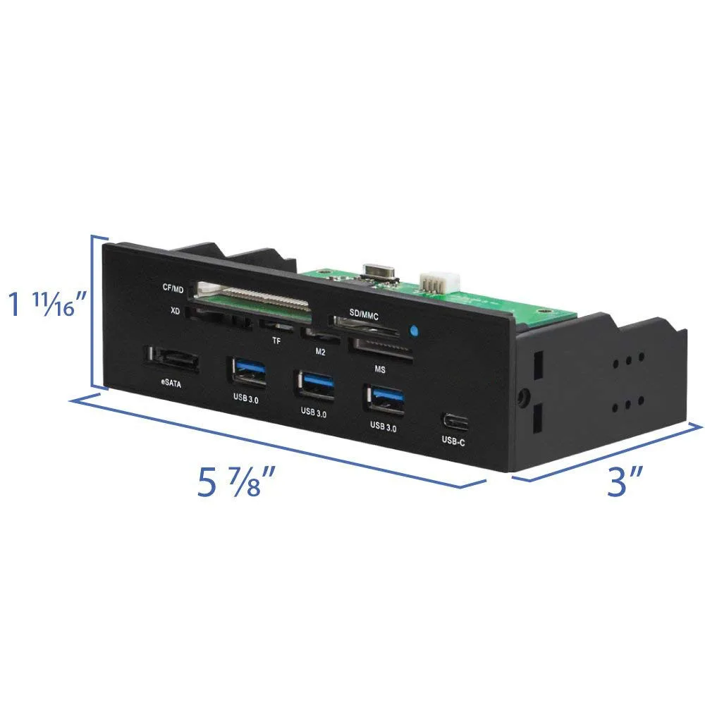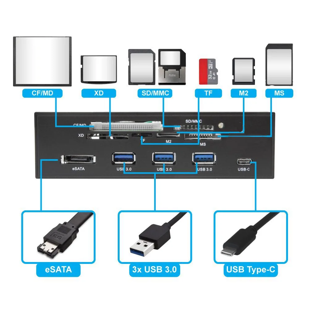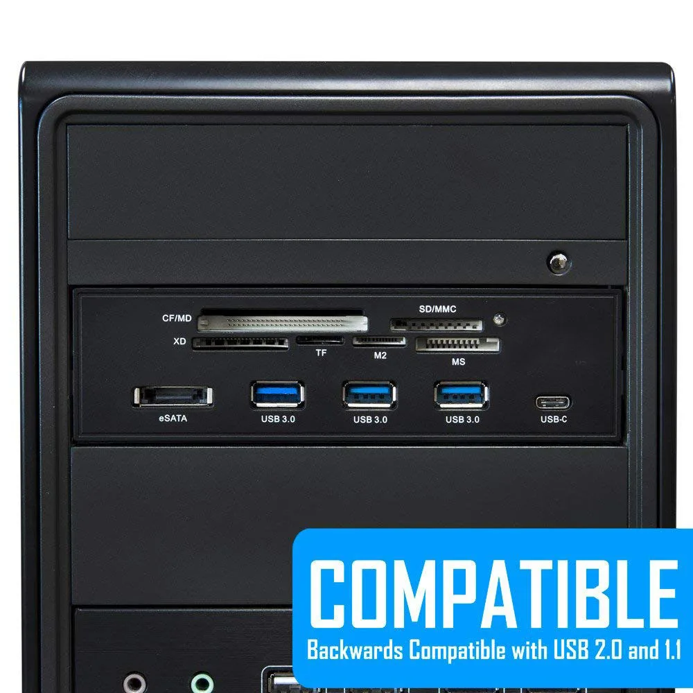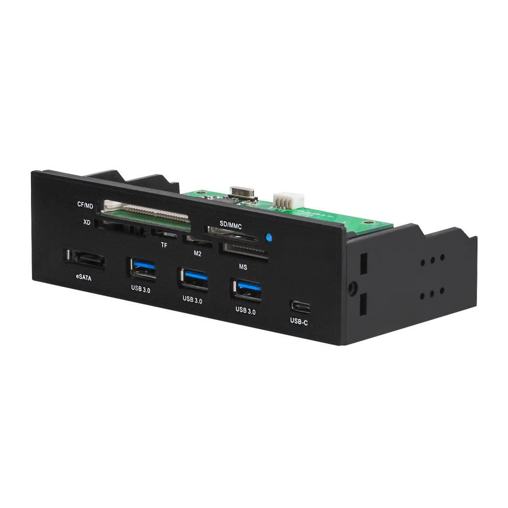 Comprar Lector de tarjetas multifunción todo en 1 con Panel frontal de ordenador de PC de 5,25 pulgadas con 3 puertos USB3.0, USB 3,1, ESATA, compatible con tarjeta CF