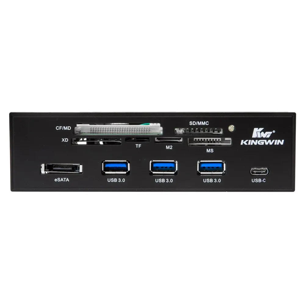 Dispositivo de panel frontal multifunción con concentrador USB 3.0, lector de tarjetas, puerto USB 3.1 y puerto eSATA.