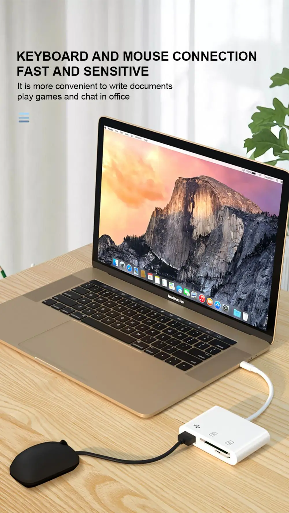 3. Extensión del puerto USB 2,0: el lector de tarjetas USB C también cuenta con un puerto USB A hembra, le permite conectar cómodamente periféricos USB, como disco flash USB, ratón, teclado, receptor inalámbrico.