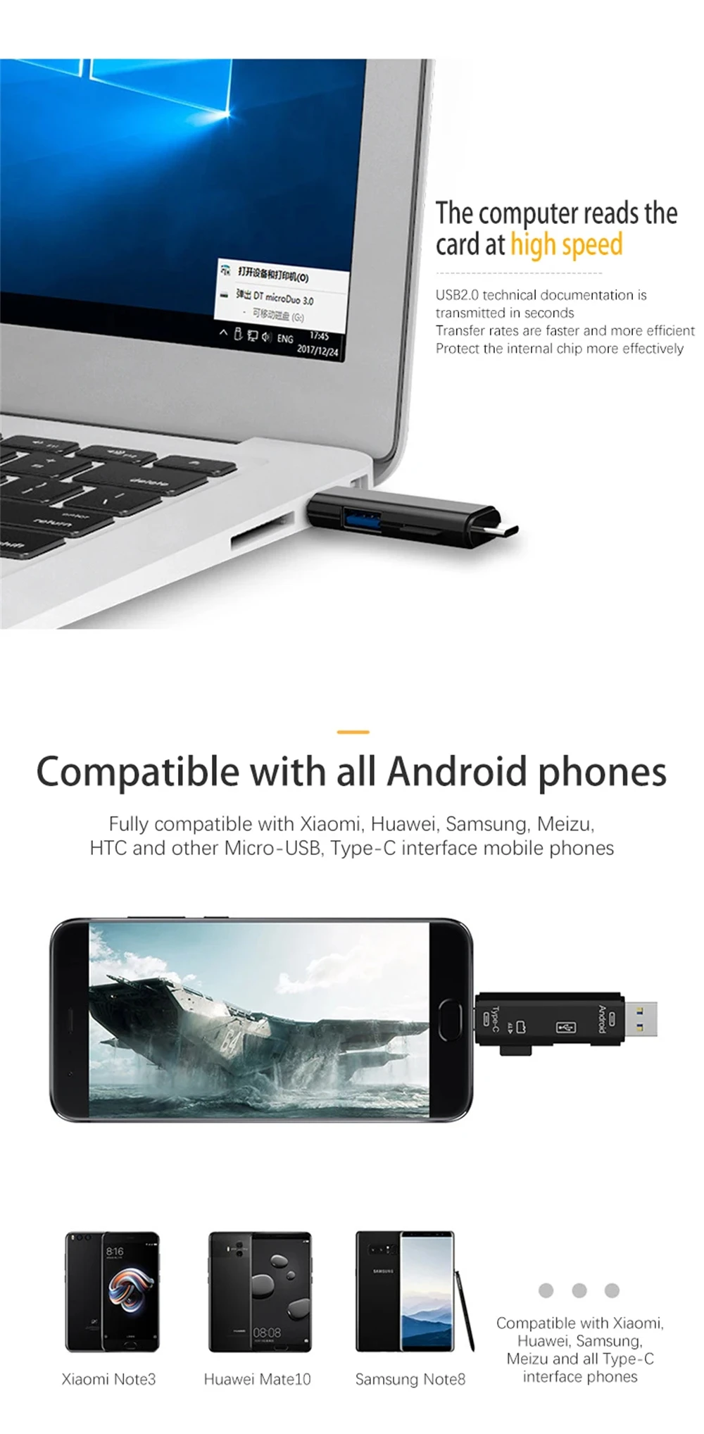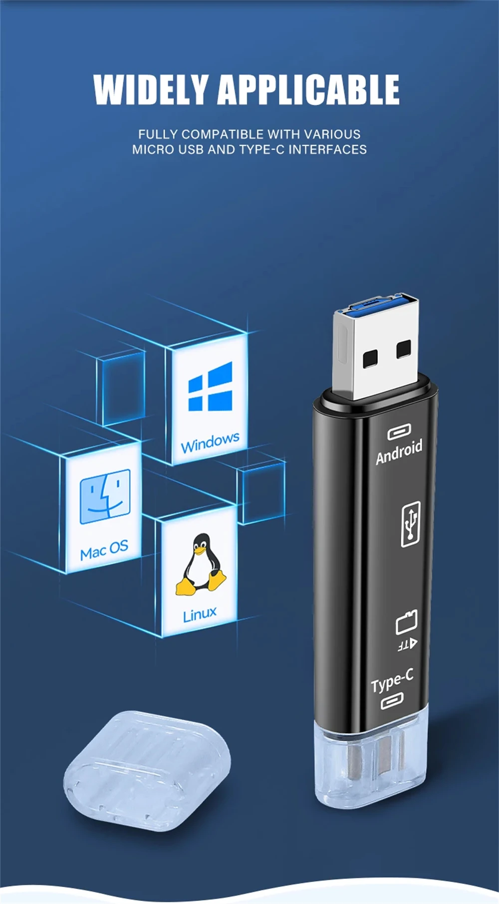 6.Compatible con múltiples sistemas: admite Micro / Usb / Type-c / TF