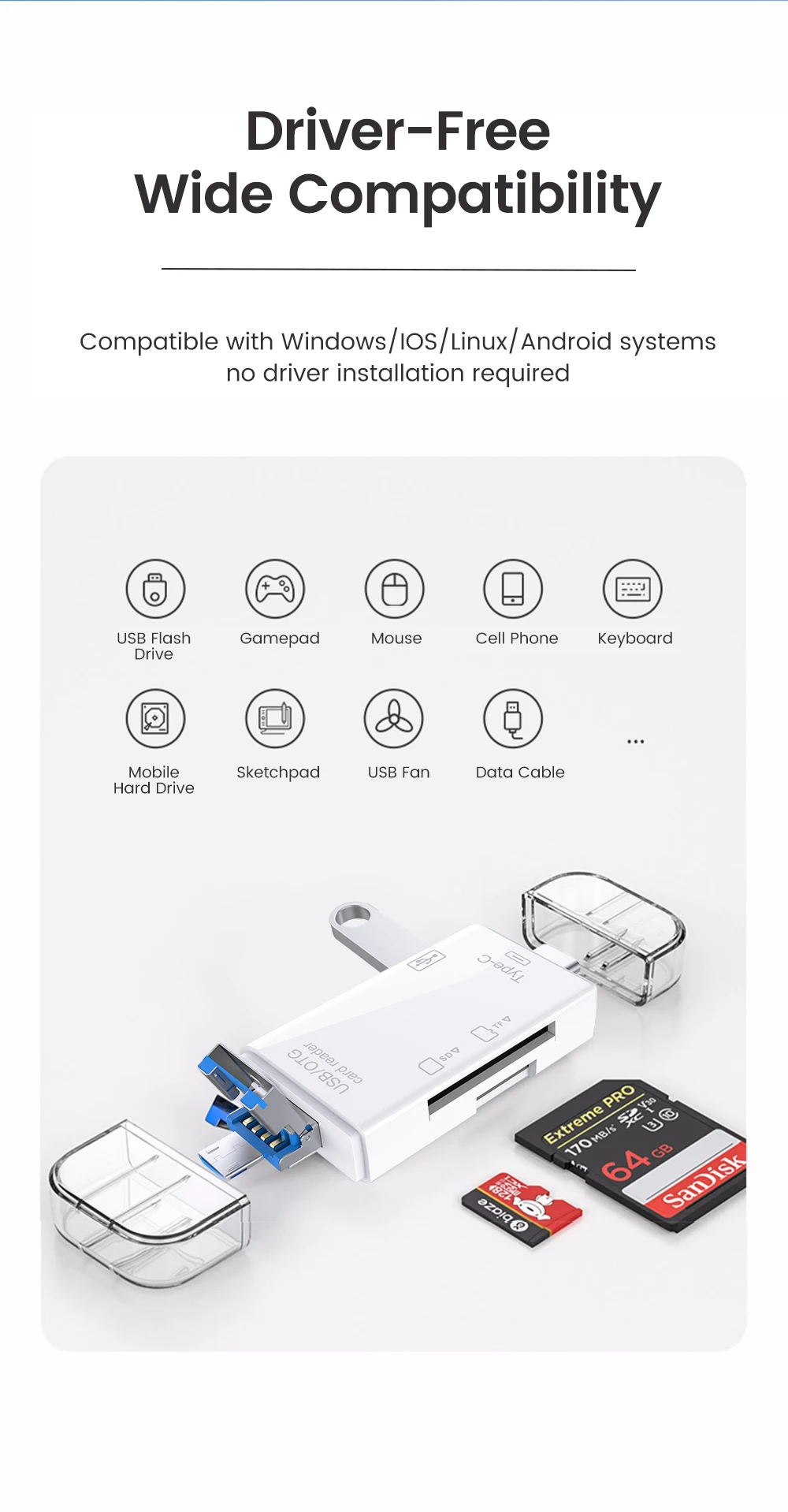 Lector de tarjetas OTG 6 en 1, lector de tarjetas Micro SD TF, unidad Flash USB, lectura de tarjetas de memoria inteligente, adaptador de lector de tarjetas USB 2,0 TF CF tipo C