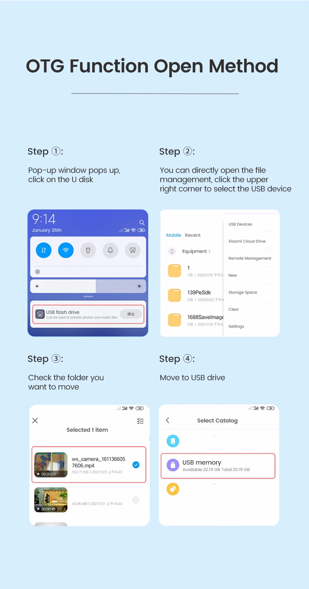 Interfaz de tarjeta SD. Interfaz de tarjeta TF. Interfaz USB. Interfaz Android. Interfaz de disco USB. Interfaz tipo C