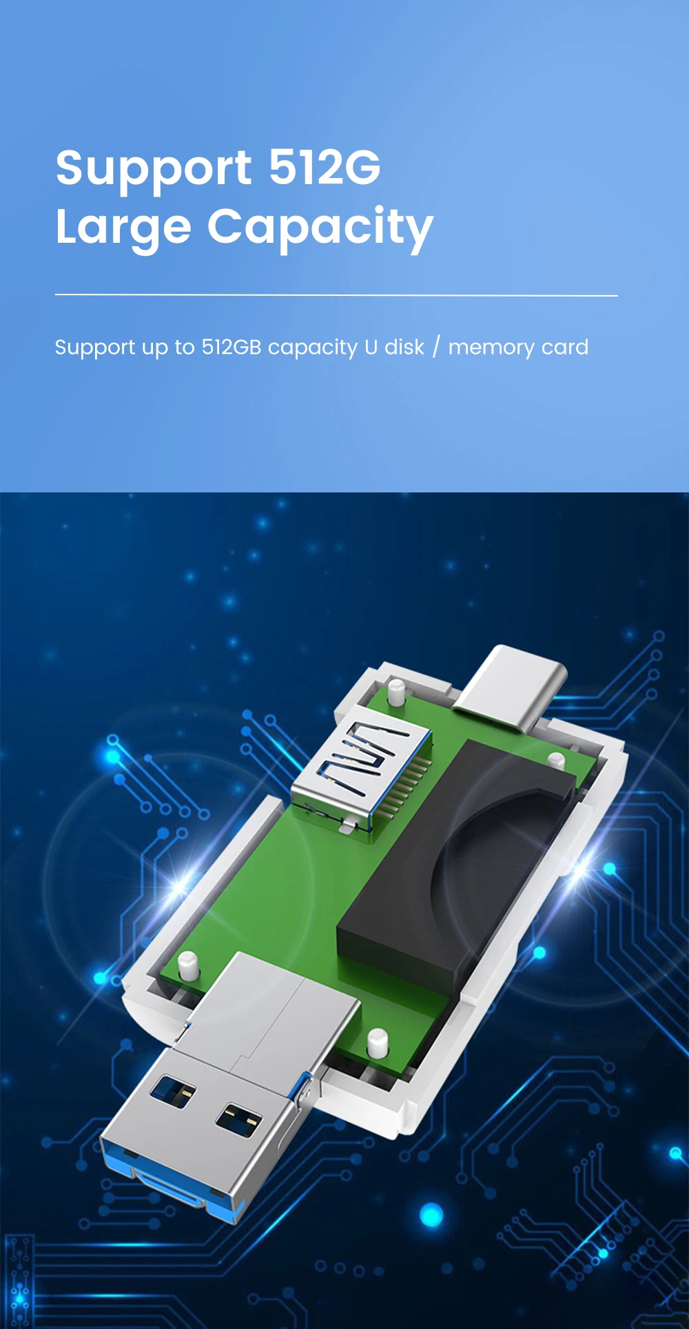 Características del producto: USB2.0 macho+MICRO macho+Tipo C macho, tarjeta de memoria TF de lectura de alta velocidad, interfaz USB hembra, teclado externo, mouse, disco USB, escudo U, mango de juego y otros dispositivos USB.