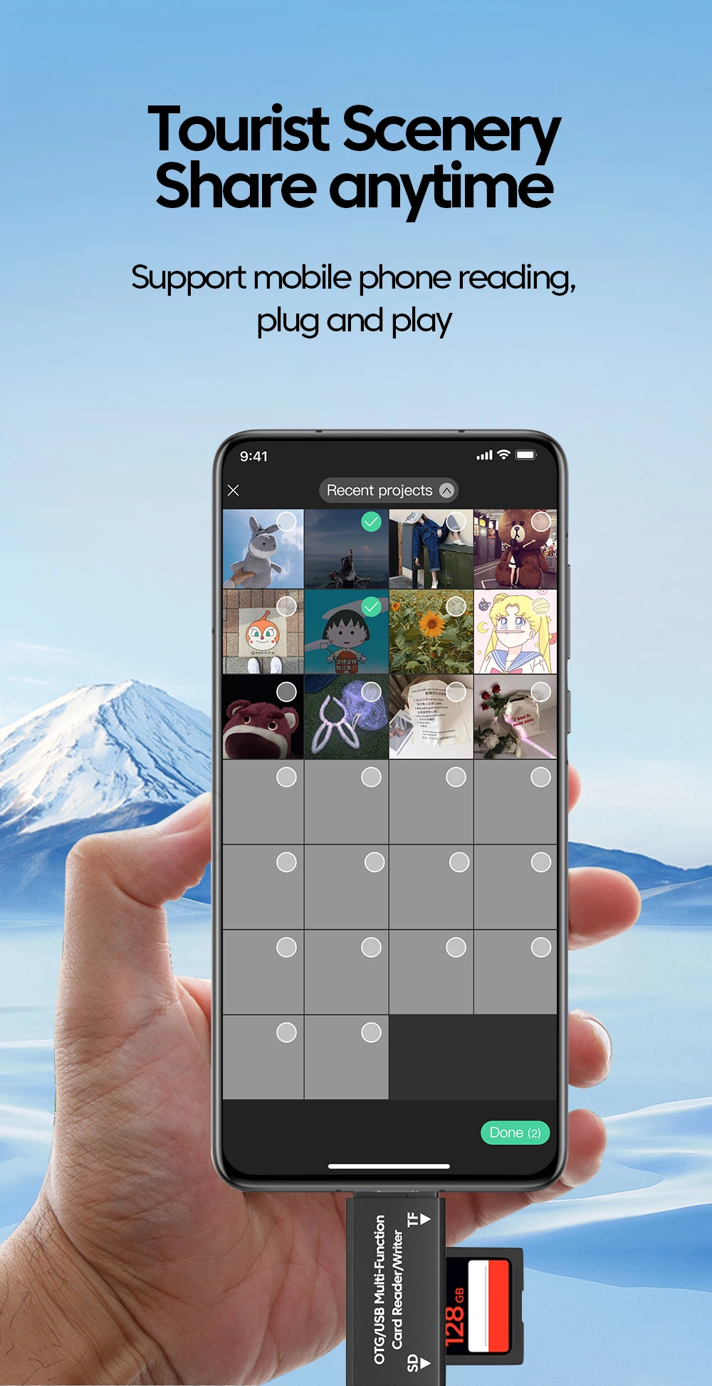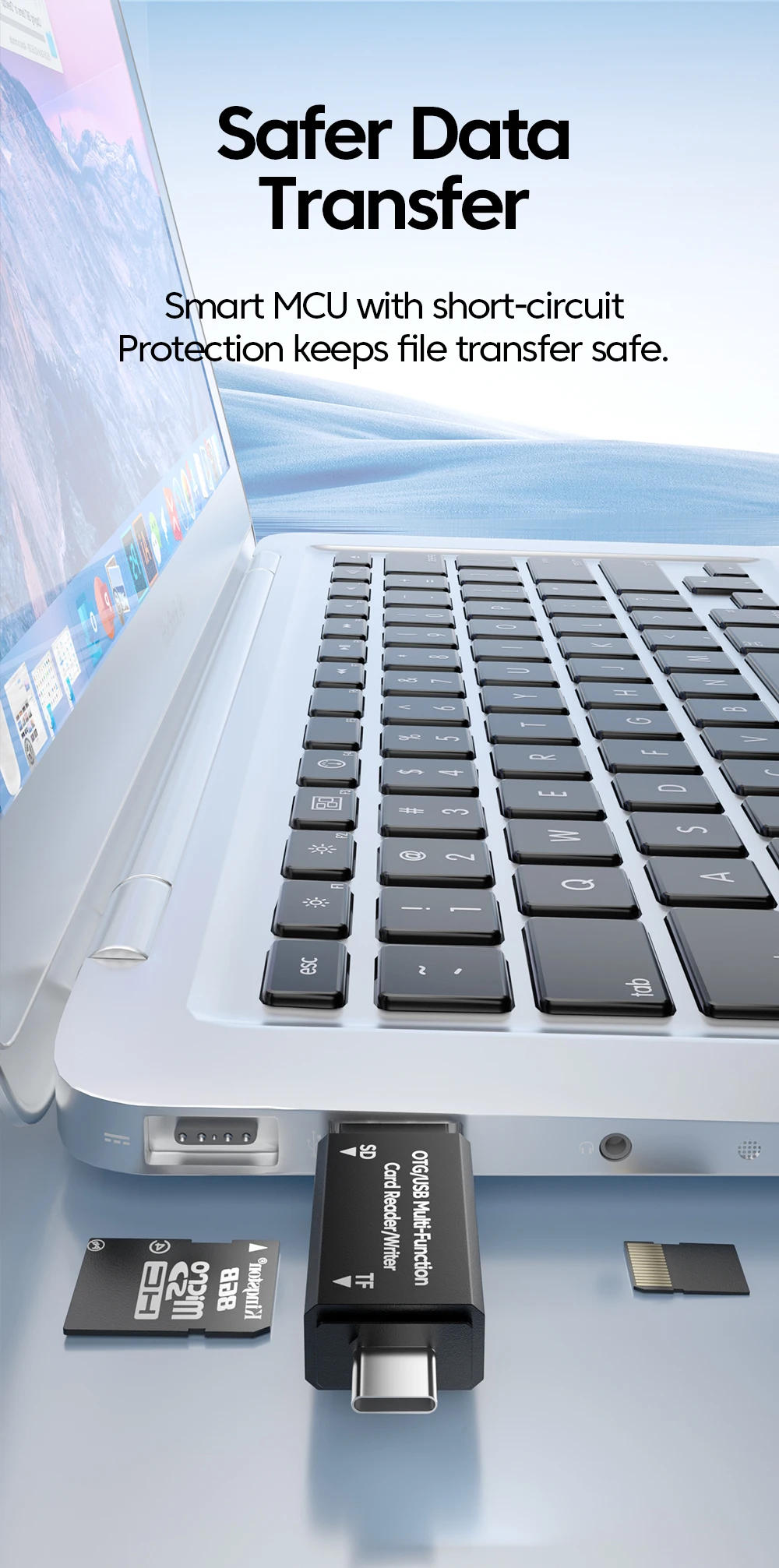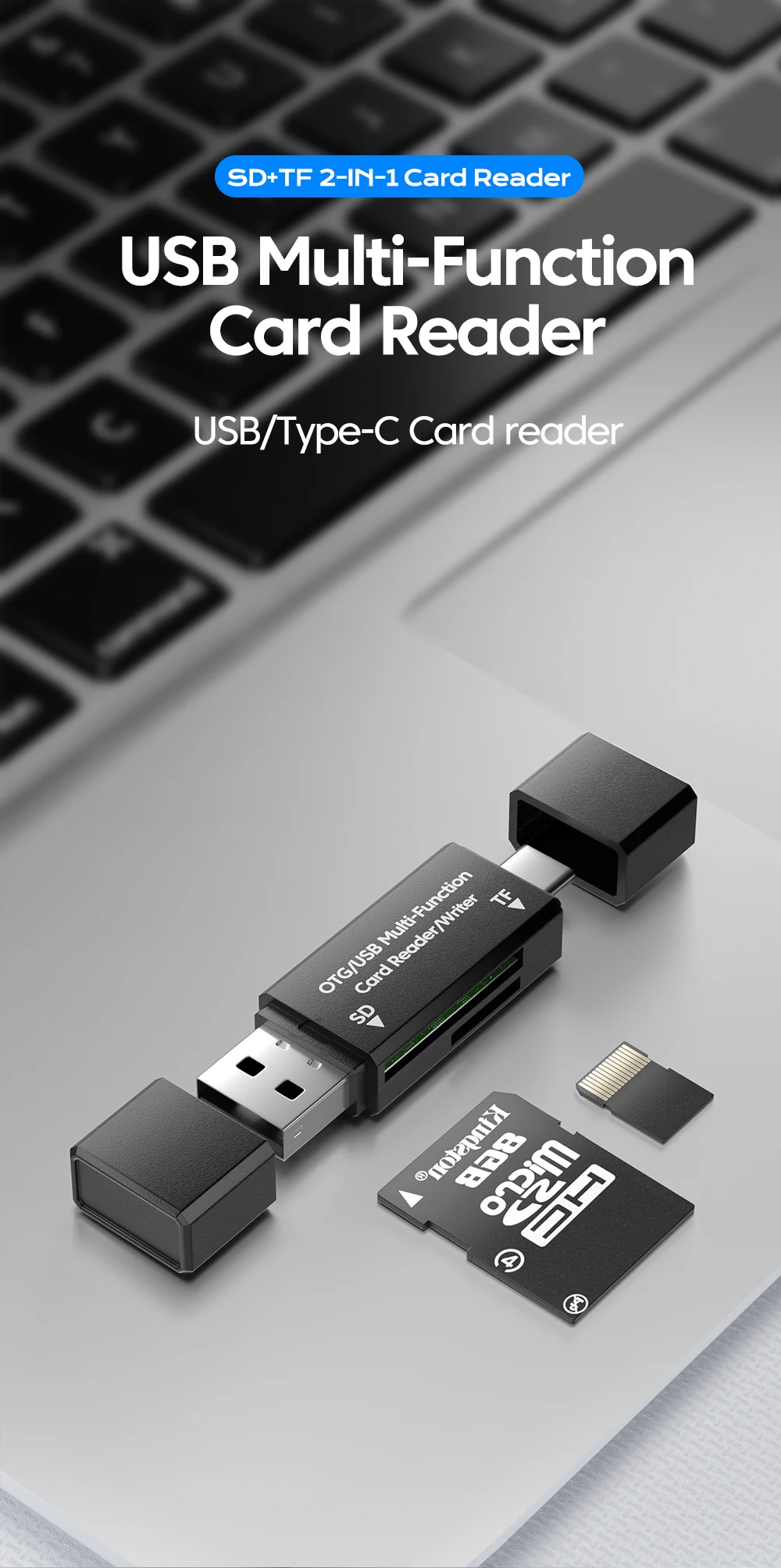 Lector de tarjetas OTG tipo C 2 en 1, lector de tarjetas de transferencia de datos USB 2,0 de alta velocidad, adaptador de lector de tarjetas de memoria SD TF para iphone 15 16