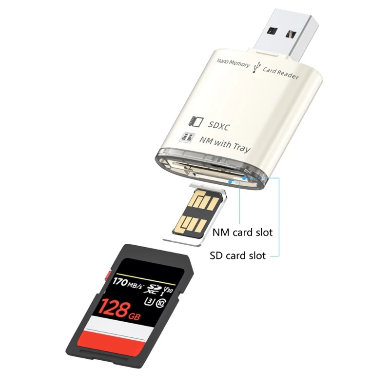 Características:OotdtyTransferencia de datos rápida con nuestro lector de tarjetas, compatible con NM y tarjetas de memoria.