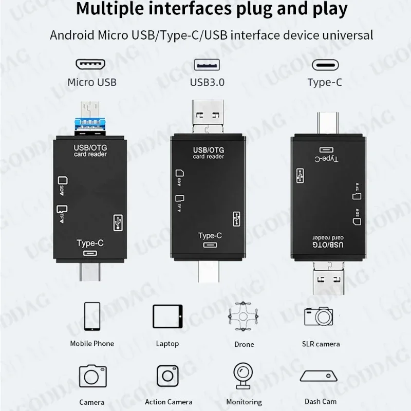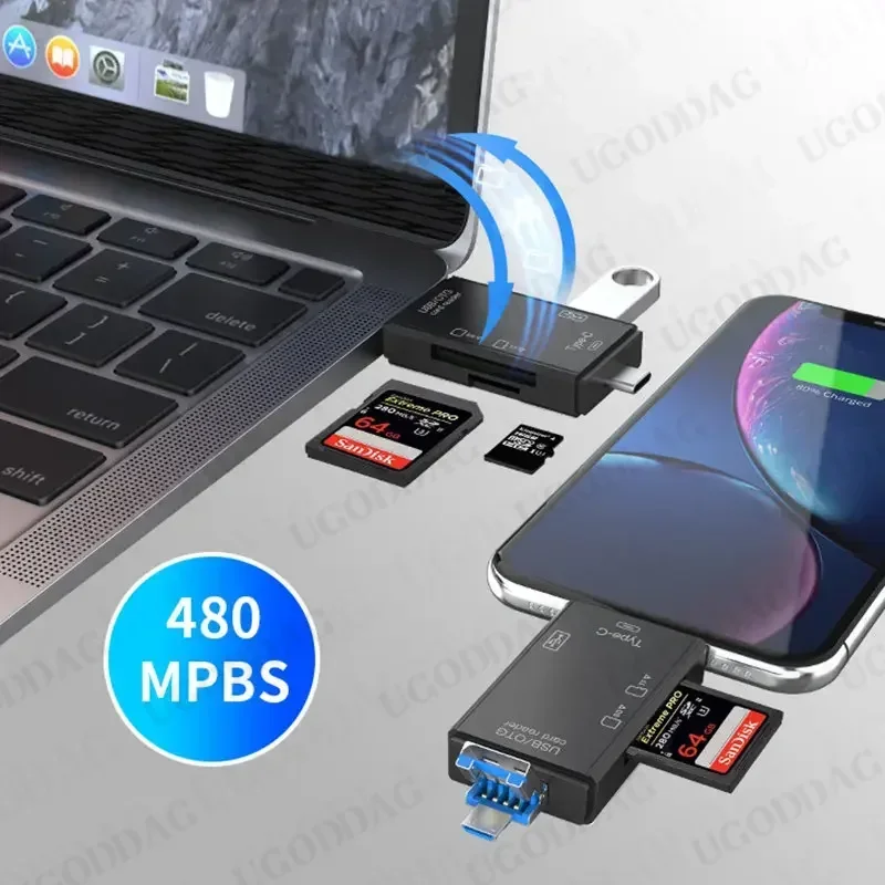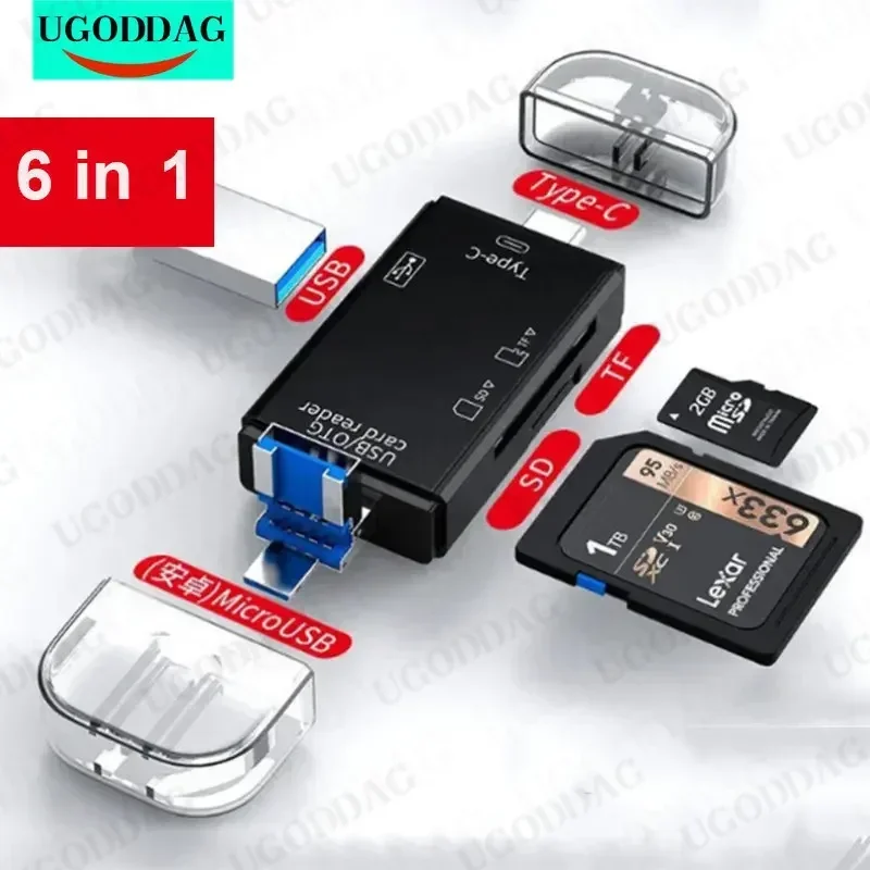 Lector de tarjetas SD Lector de tarjetas USB 2.0 TF/Mirco SD Lector de tarjetas de memoria inteligente Tipo C OTG Adaptador de lector de tarjetas de unidad flash