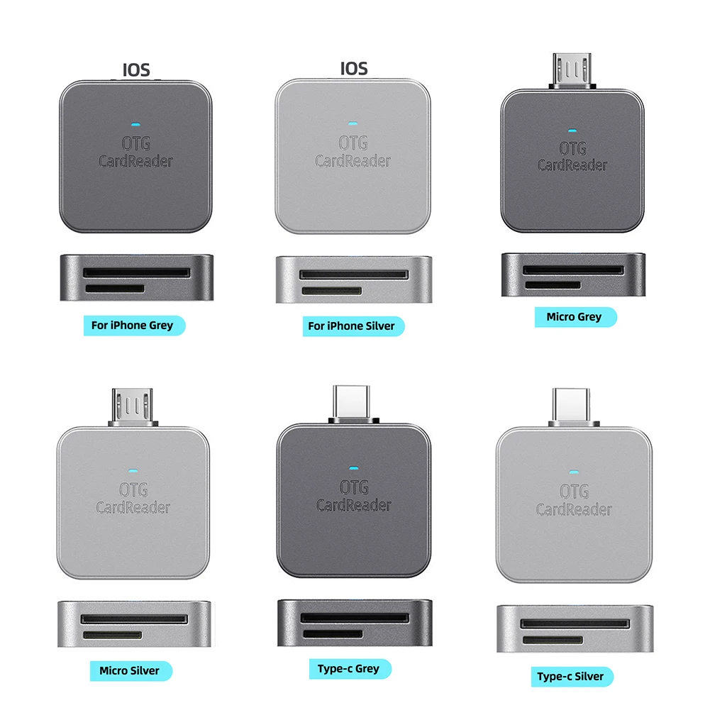 Comprar Lector de tarjetas SD TF 2 en 1, convertidor de datos para teléfono móvil, Plug and Play, lector de tarjetas externo para iPhone, Micro tipo C, tableta de teléfono
