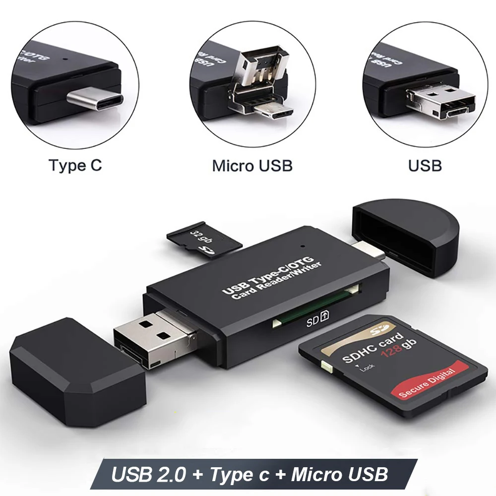 Comprar Lector de tarjetas SD TF 3 en 1 USB tipo C lector de tarjetas Micro USB a SD TF lector de tarjetas de memoria SD TF adaptador de lector de tarjetas de unidad Flash OTG
