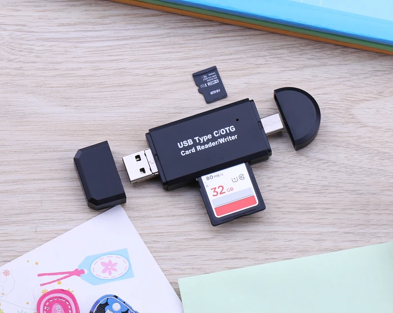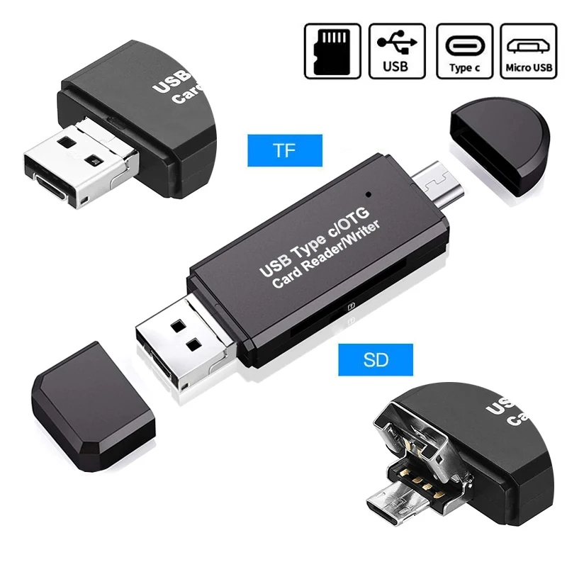 Comprar Lector de tarjetas SD tipo C, adaptador de tarjetas 3 en 1, USB 2,0, TF, Mirco, SD, para Macbook, PC, teléfono OTG