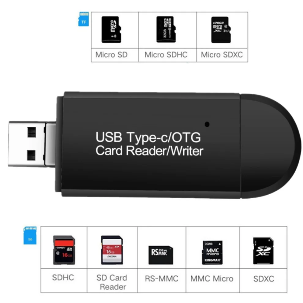 Comprar Lector de tarjetas SD USB 2,0 3 en 1, lector de tarjetas USB C TF/Mirco SD, lector de tarjetas de memoria inteligente tipo C, unidad Flash OTG, adaptador de lector de tarjetas