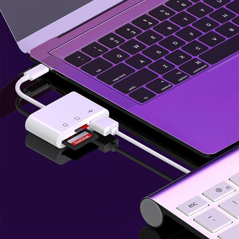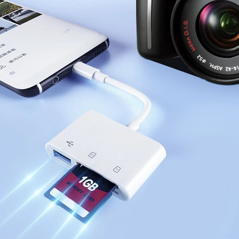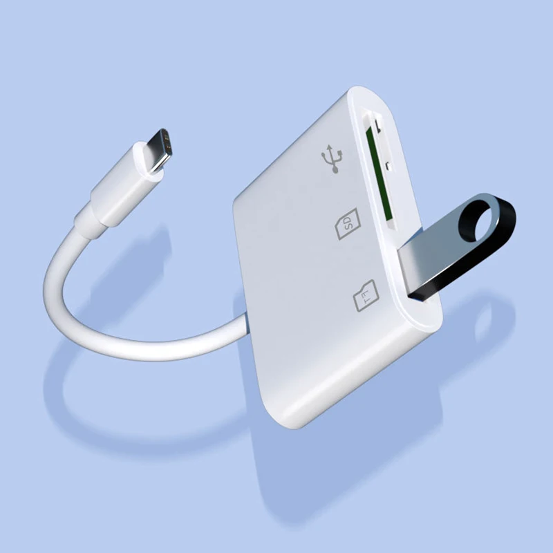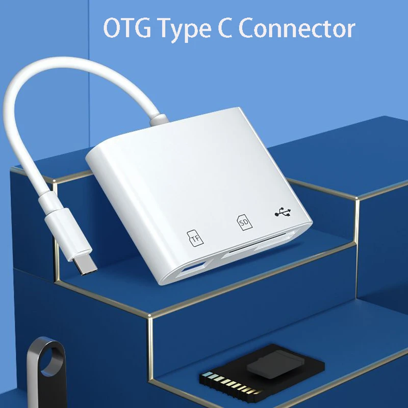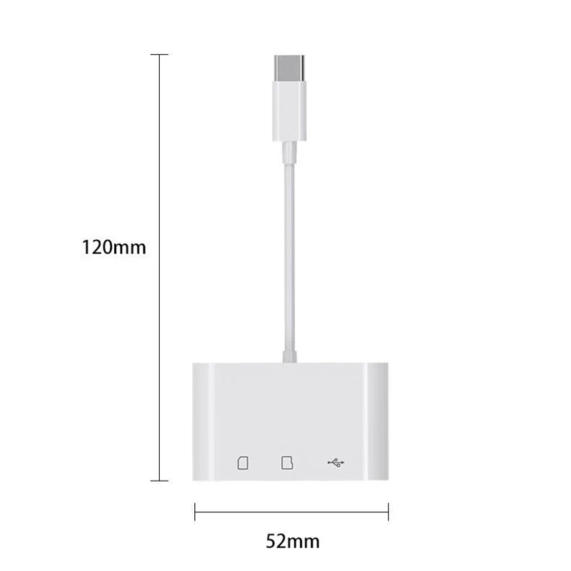 Lector de tarjetas tipo C de 3 puertos, cámara de teléfono para PC, tarjeta de memoria Micro SD TF, convertidor OTG para iPhone, Android, adaptador de disco USB
