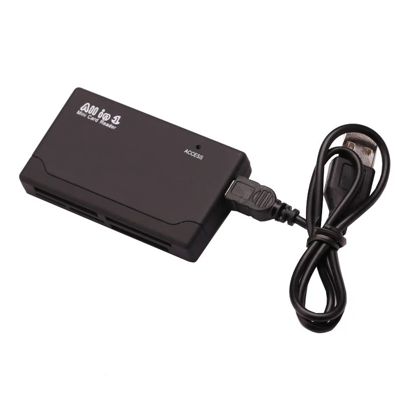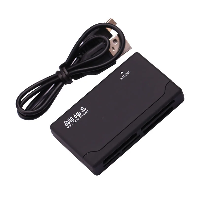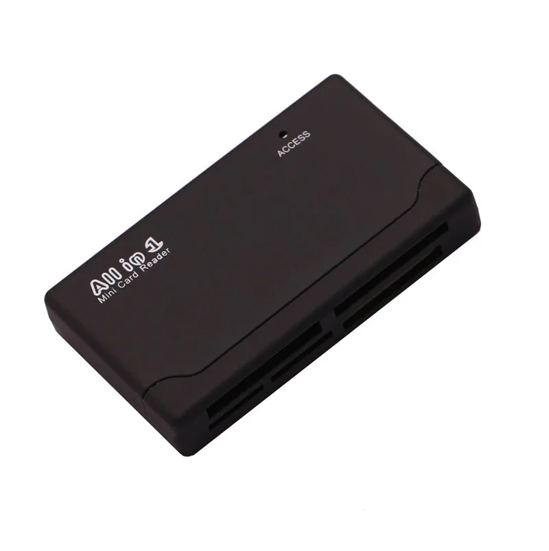 Lector de tarjetas compatible: SD / Mini SD / XD / CF / T-Flash / SDHC, MMC / MMC Micro / HS-MMC / RS-MMC / MMC Mobile / Mobile-Poketbnet / Micro, Drive / Micro SD,. M2 / MS PRO / MS DUO / HS-MS / Duo-Gaming Especificación versión 2,0, velocidad completa de hasta 480Mbps. Dispositivo de instalación Plug & Play fácil. No se necesita alimentación externa. Luz LED clew estado de lectura y escritura. Mini SD, T-Flash, uso M2 sin adaptador. Tamaño Delgado, fácil de llevar. Dimensiones: aprox. 67*40*12mm Color: Negro