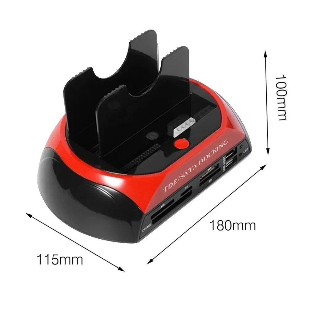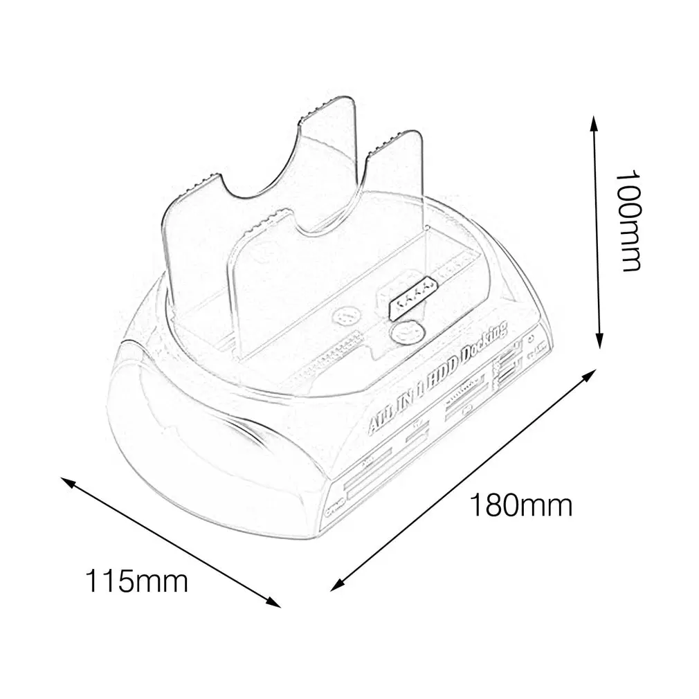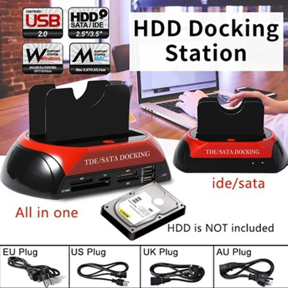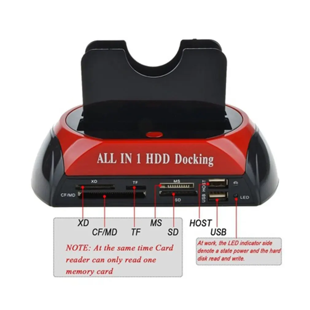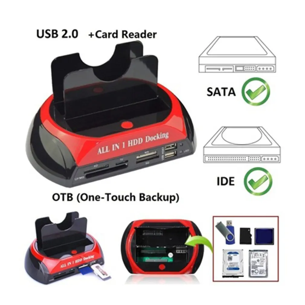 Todo en 1 HDD Docking 2,5 "/3,5" USB 2,0 Lector de tarjetas IDE SATA Dock Station Transferencia de alta velocidad Función OTB de respaldo de un toque