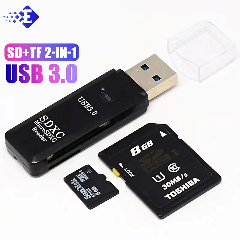 Interfaz: USB 3.0/USB 2.0 (opcional)Tarjetas de almacenamiento compatibles: SD, TFMétodo de instalación: ExternoPeso: alrededor de 20 gMaterial de la carcasa: plásticoColor: negro/blanco●Transmisión de alta velocidad USB3.0/USB2.0