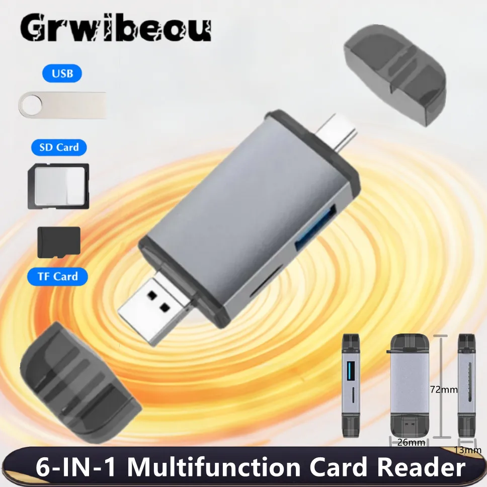 Comprar Lector de tarjetas USB 3.0 tipo C 6 en 1 - Adaptador de unidad flash TF/SD/Micro USB, lector OTG de alta velocidad de 5 Gbps para teléfono/PC/portátil