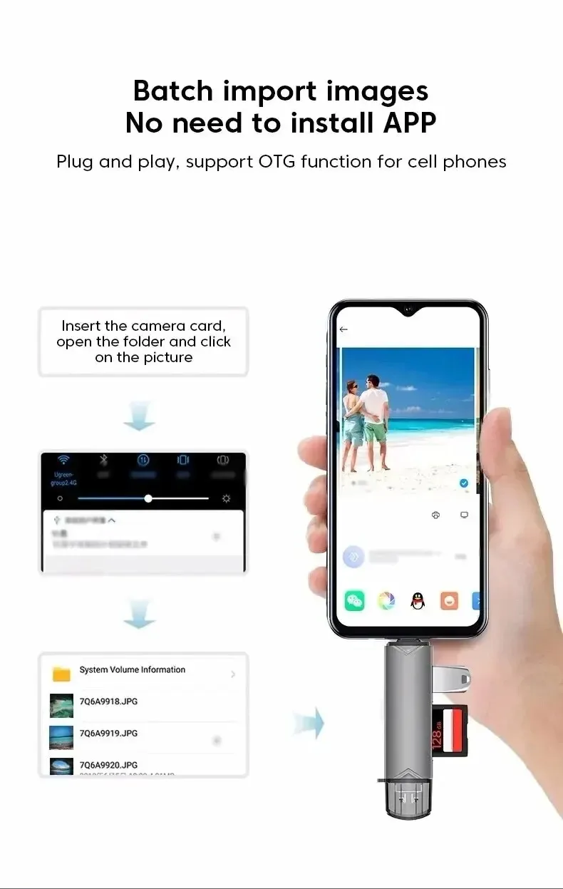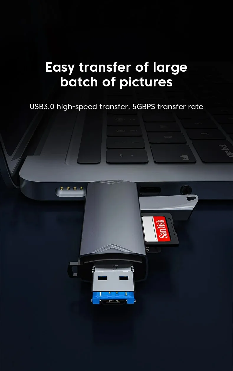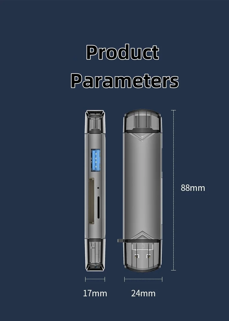 Lector de tarjetas USB C 6 en 1, adaptador OTG USB 3.0 para iPhone 15/Android/PC, transferencia de alta velocidad de 5 Gbps para unidad flash SD/TF/Micro USB