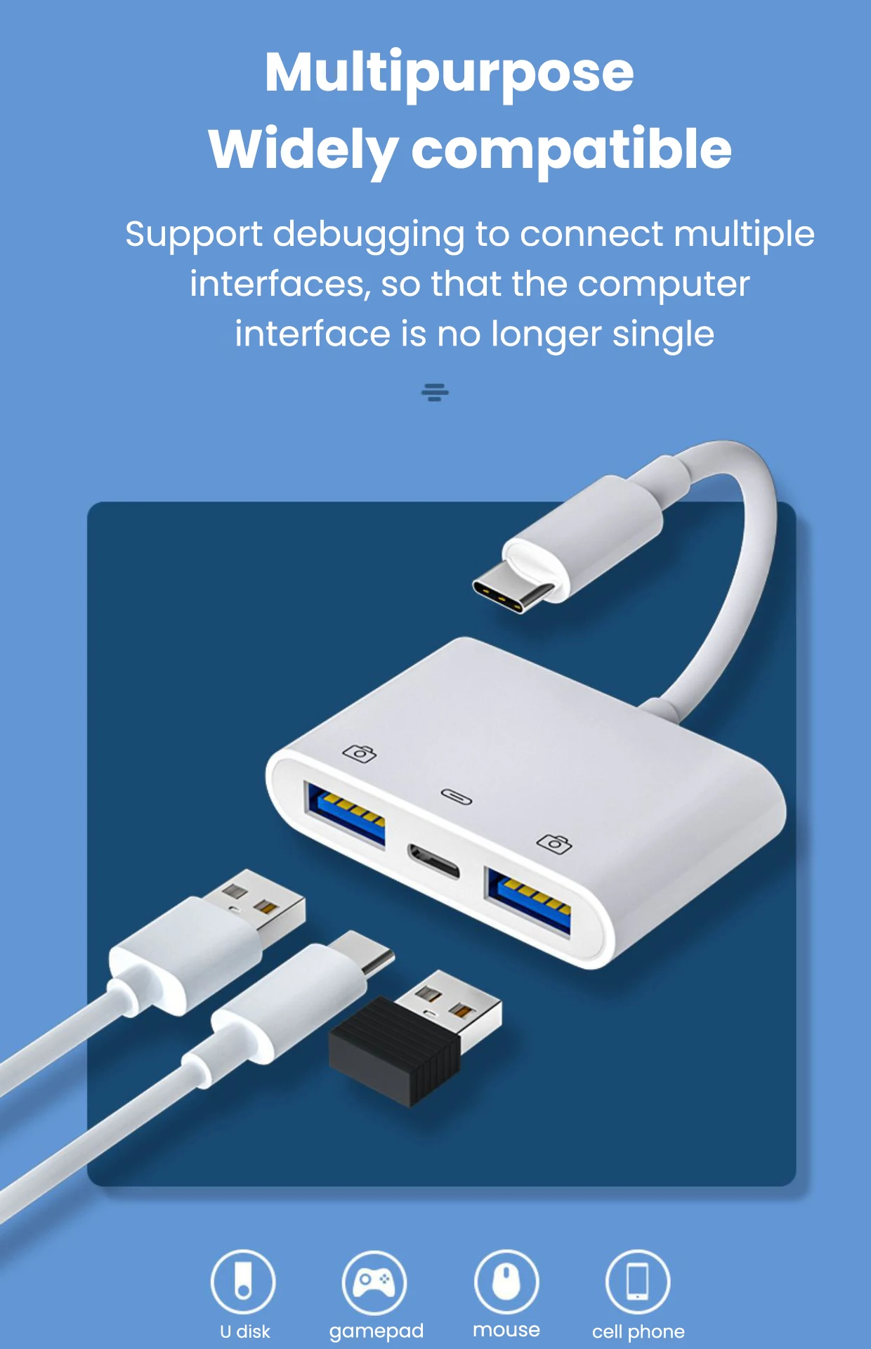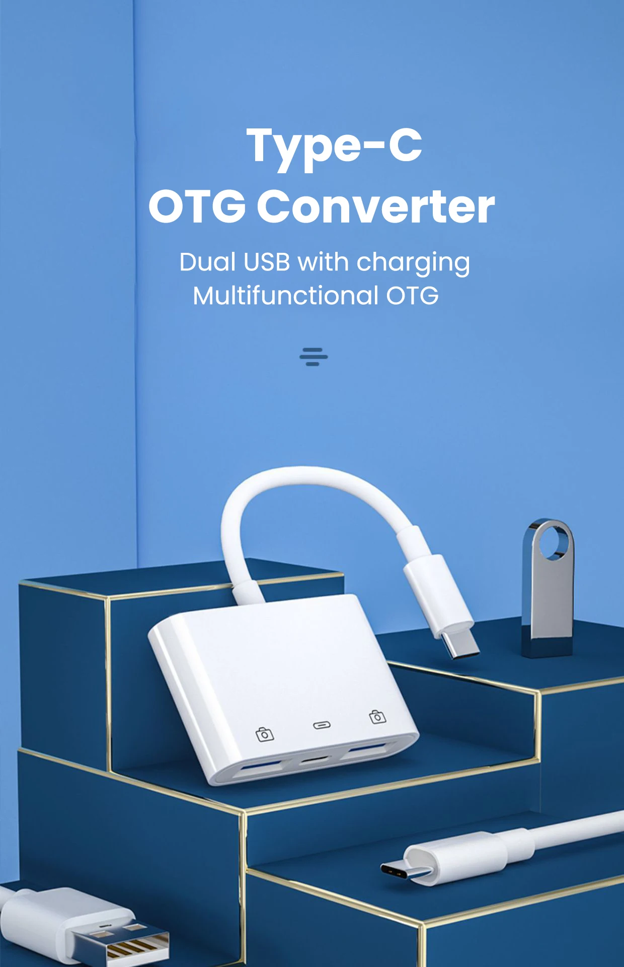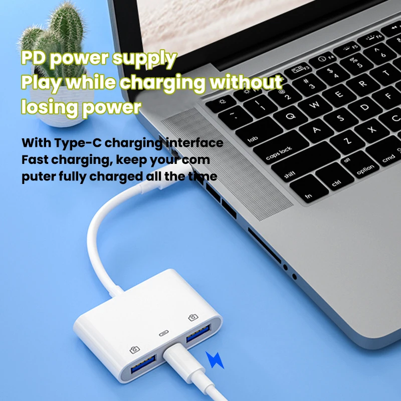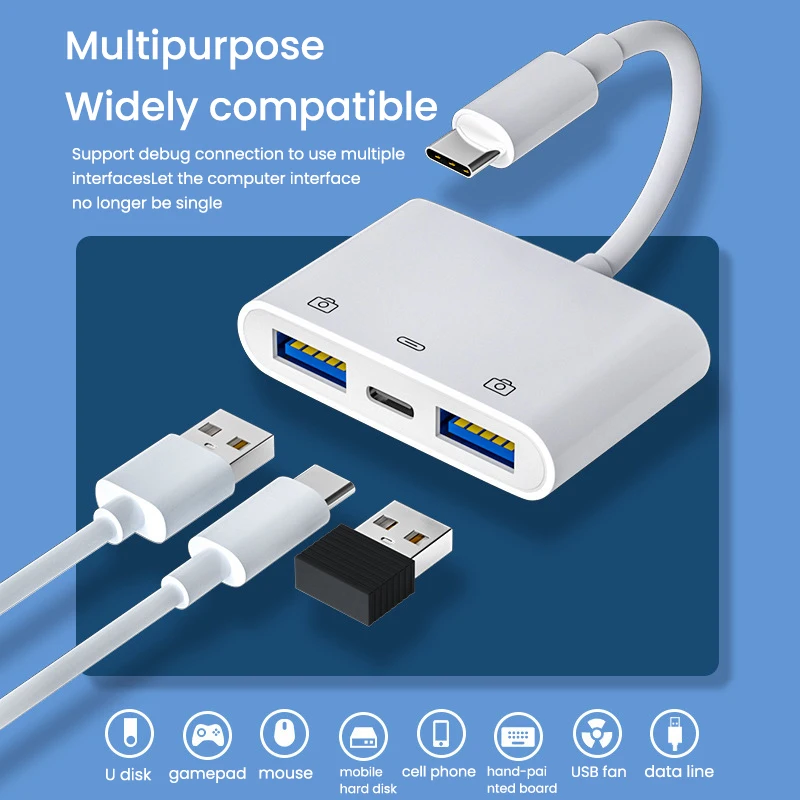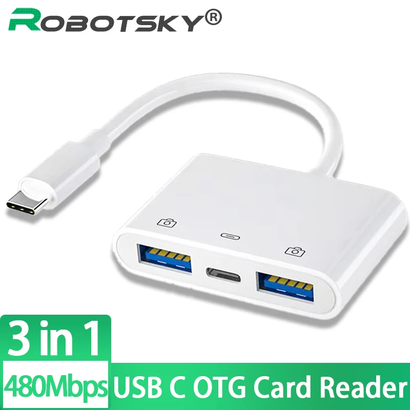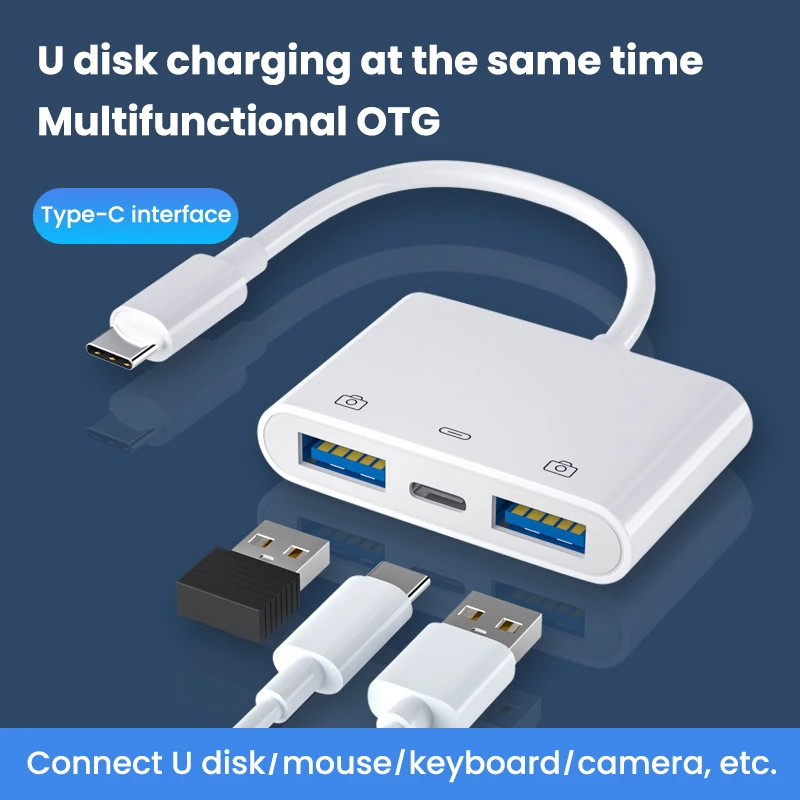 Comprar Lector de tarjetas USB C a USB OTG, unidad Flash con puerto de carga tipo C, conectar disco U/ratón/teclado para adaptador de teléfono tipo C, 3 en 1