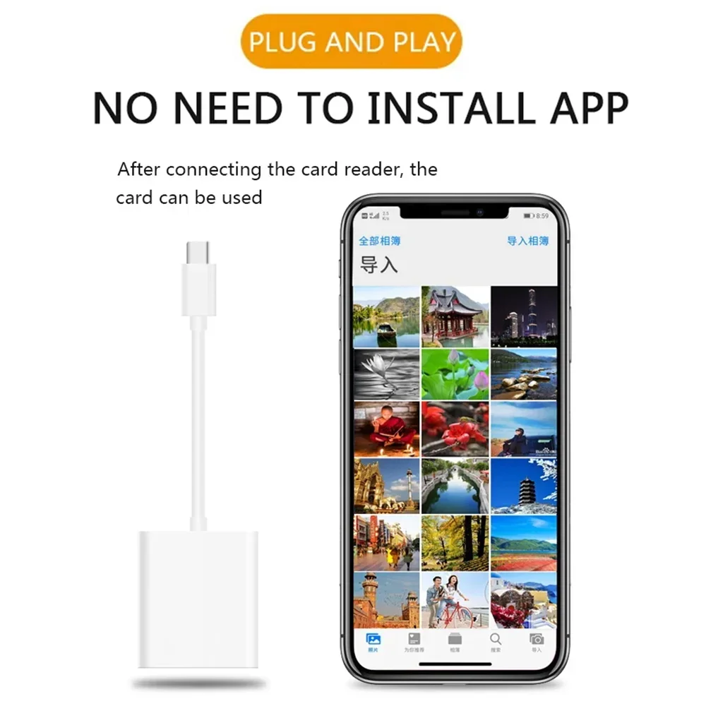 2.Plug and Play: No es necesario conectarse a Internet ni descargar aplicaciones de terceros, simplemente conéctelo y espere unos segundos para conocer el contenido de la tarjeta de memoria.El diseño intercambiable en caliente del lector de tarjetas evita la pérdida de datos y el desgaste del dispositivo.