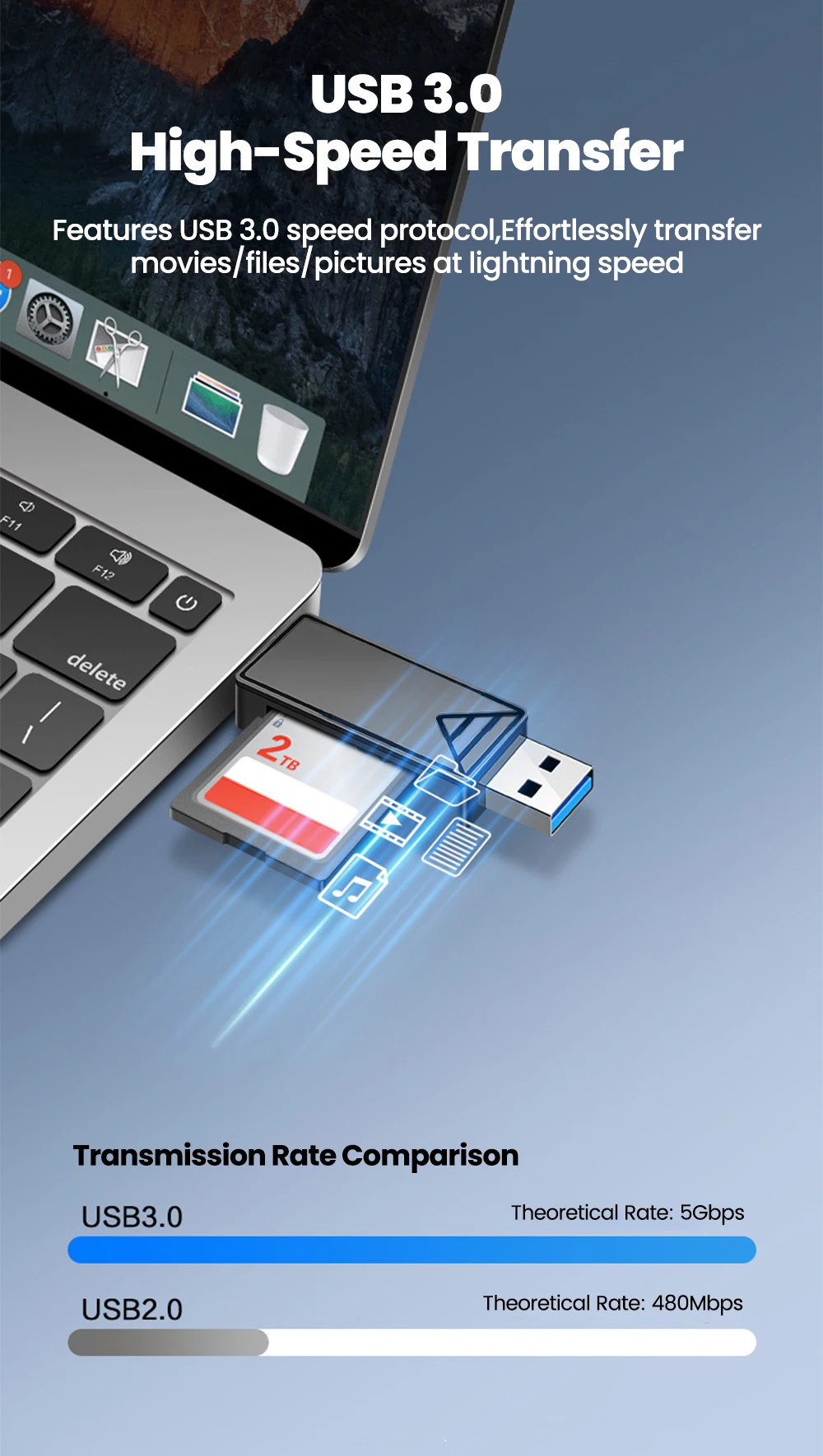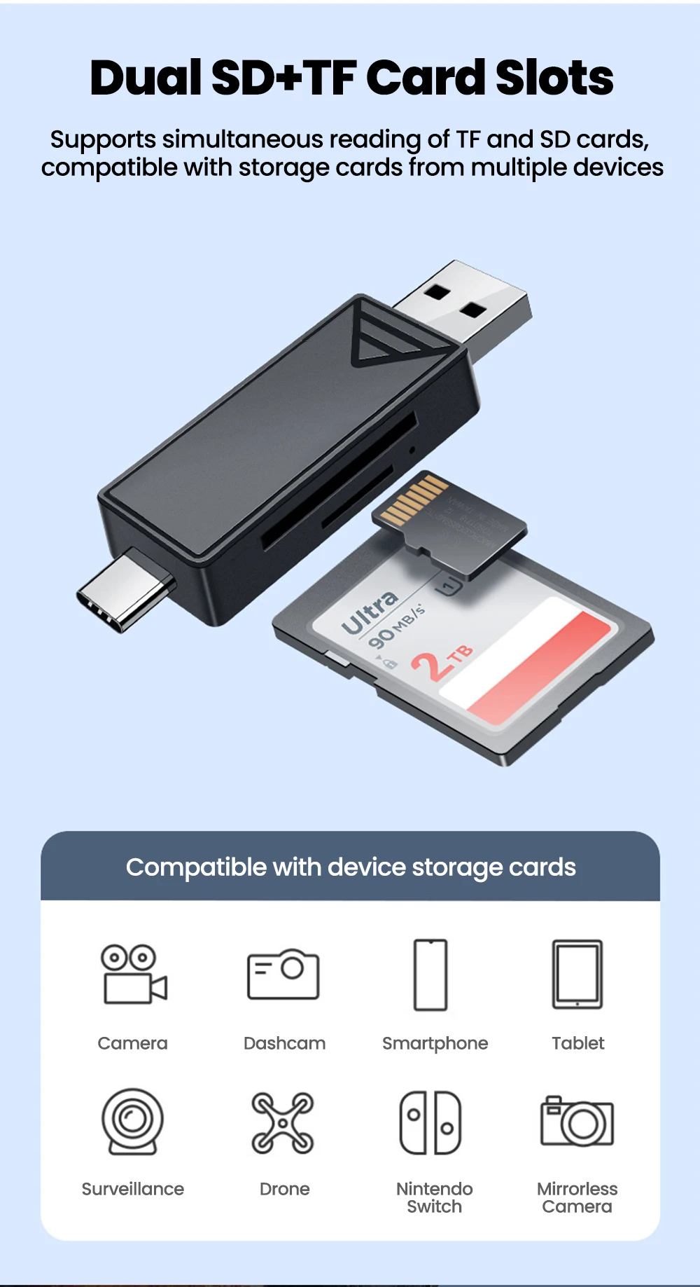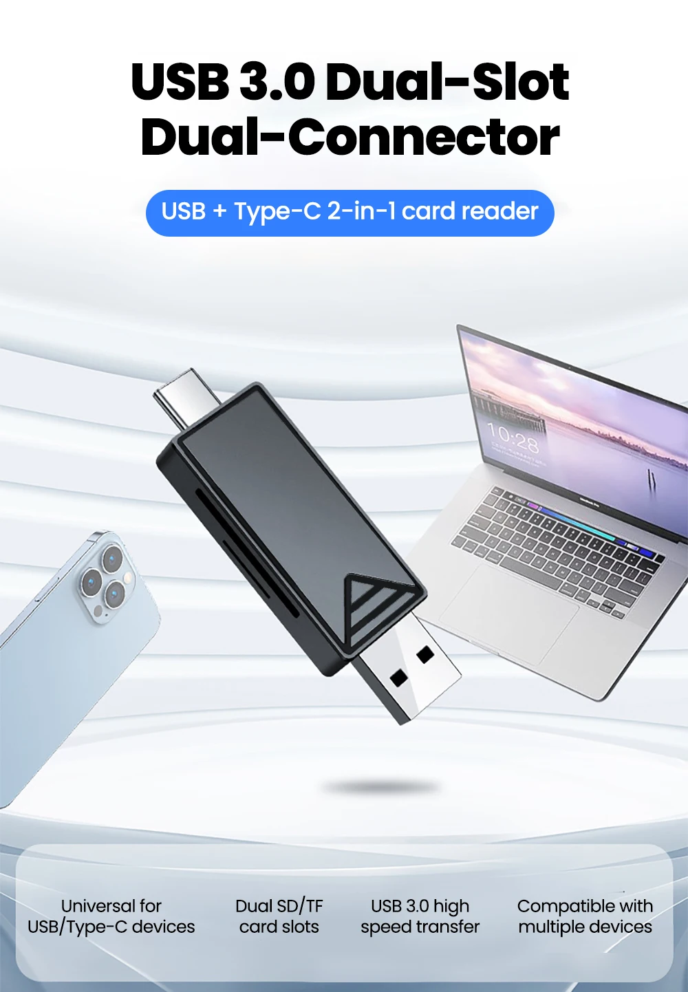 Lector de tarjetas USB2.0/3,0 2 en 1, ranura Dual, USB tipo C a SD TF, adaptador de lector de tarjetas de memoria para iphone 15 16 17, Samsung, PC y portátil