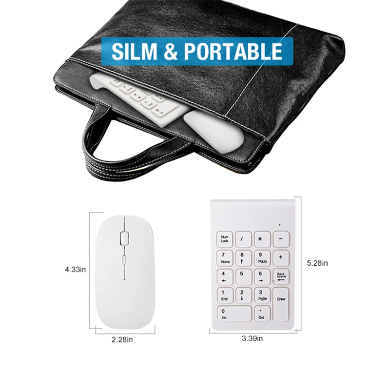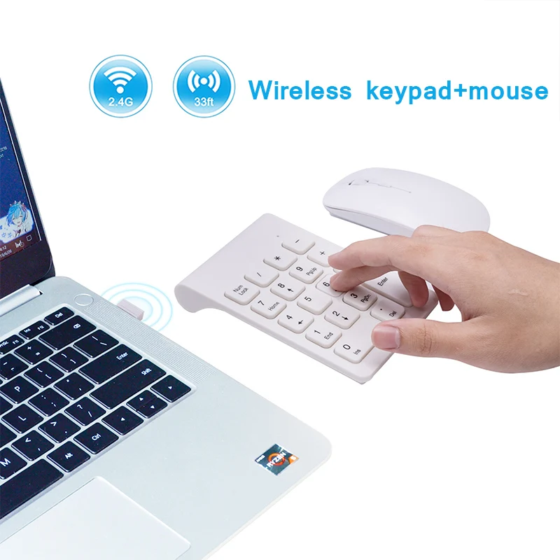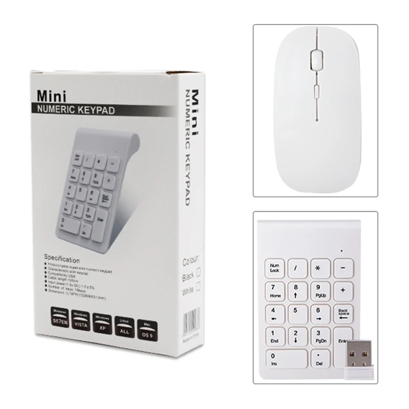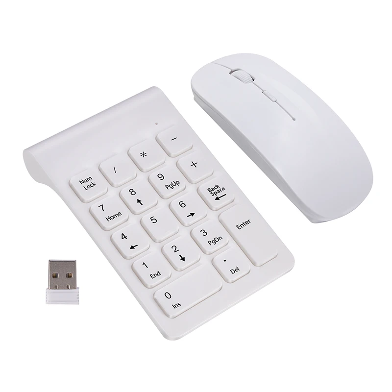 Comprar Lefon-miniteclado Digital inalámbrico de 2,4 GHz, teclado numérico blanco de 18 teclas, juego de ratón para ordenador portátil y PC