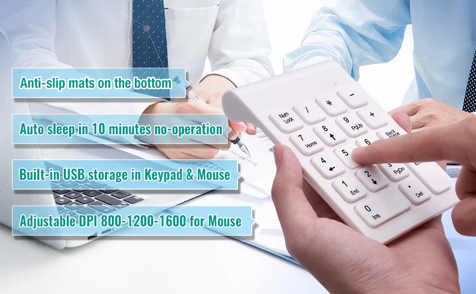 【Plug and Play】-El teclado numérico y el ratón comparten solo UN receptor USB. Simplemente conéctelo sin necesidad de controladores adicionales.