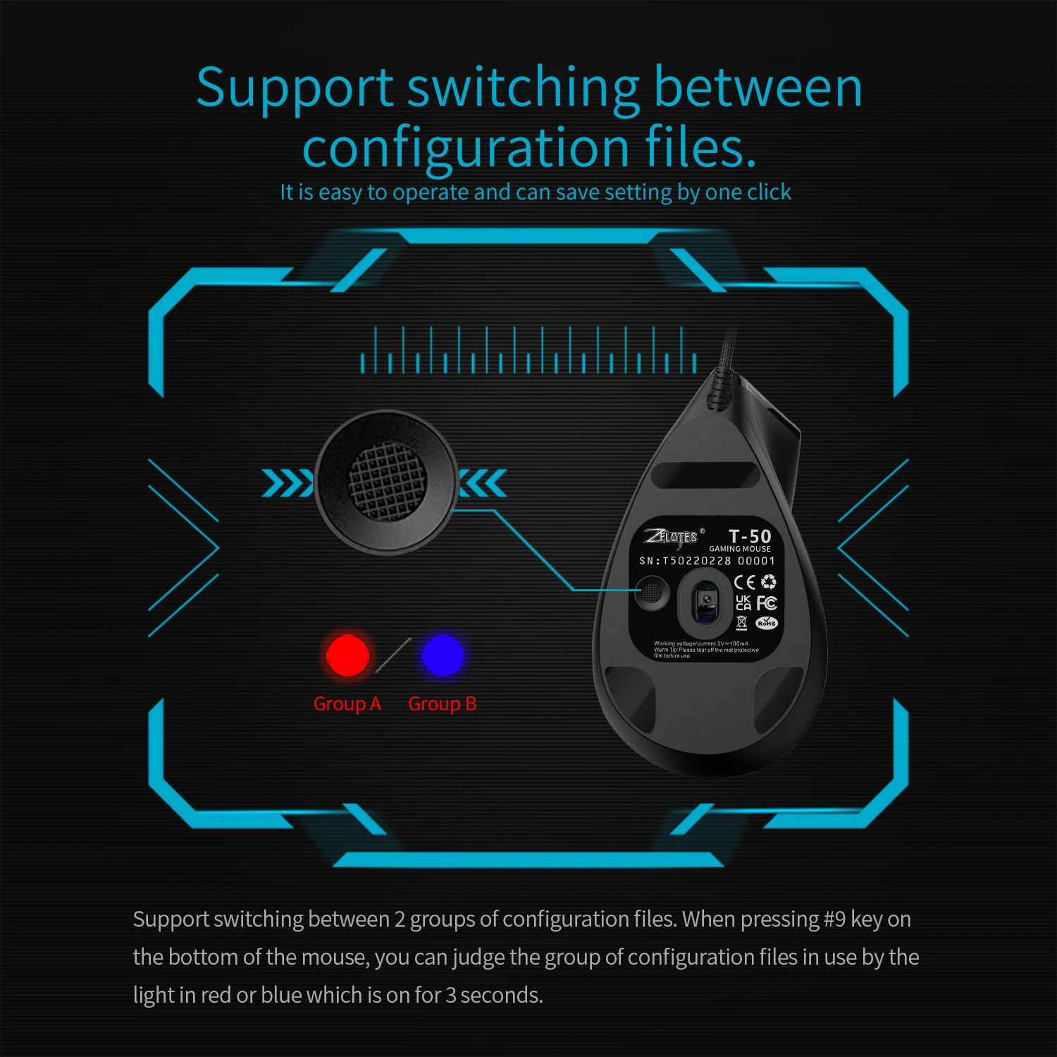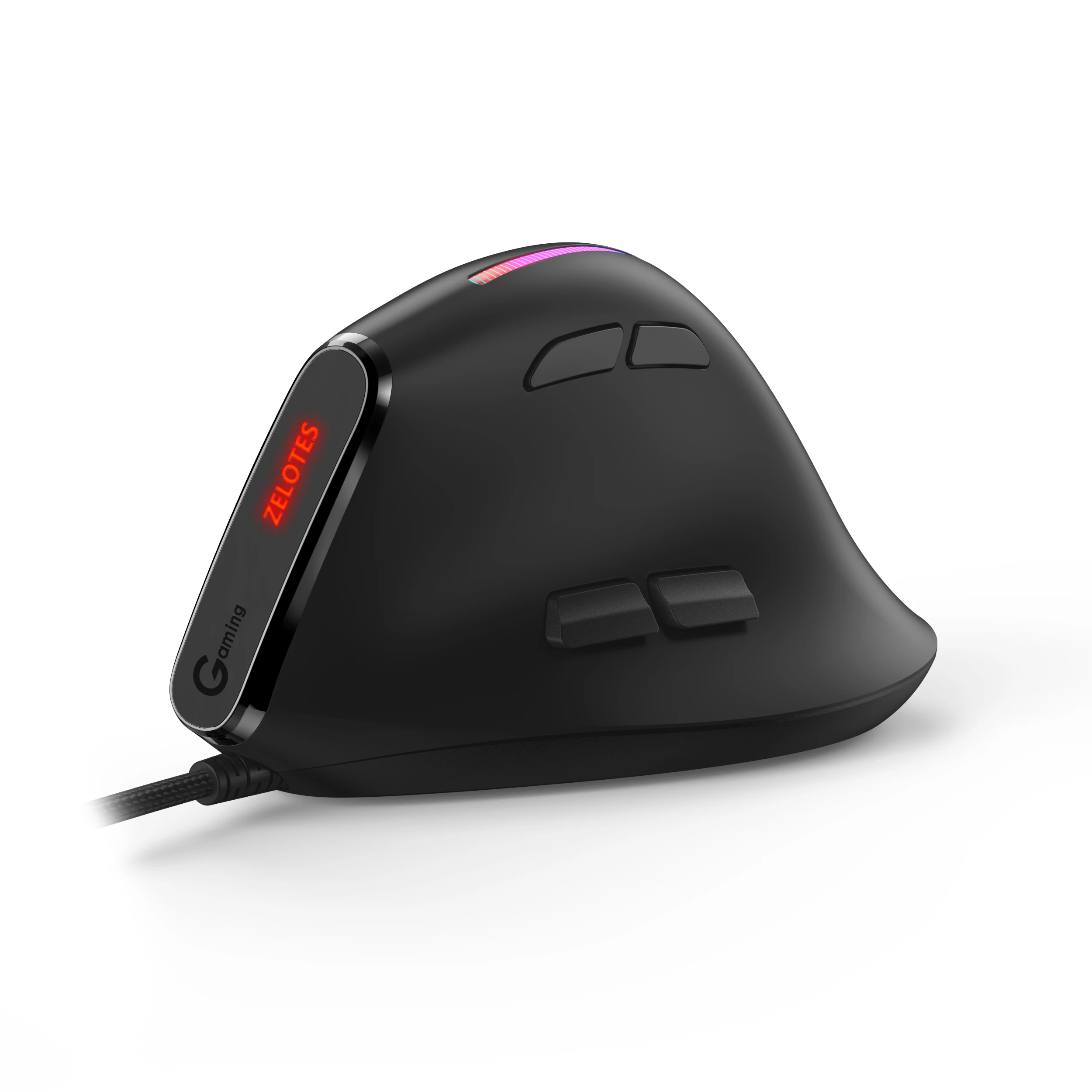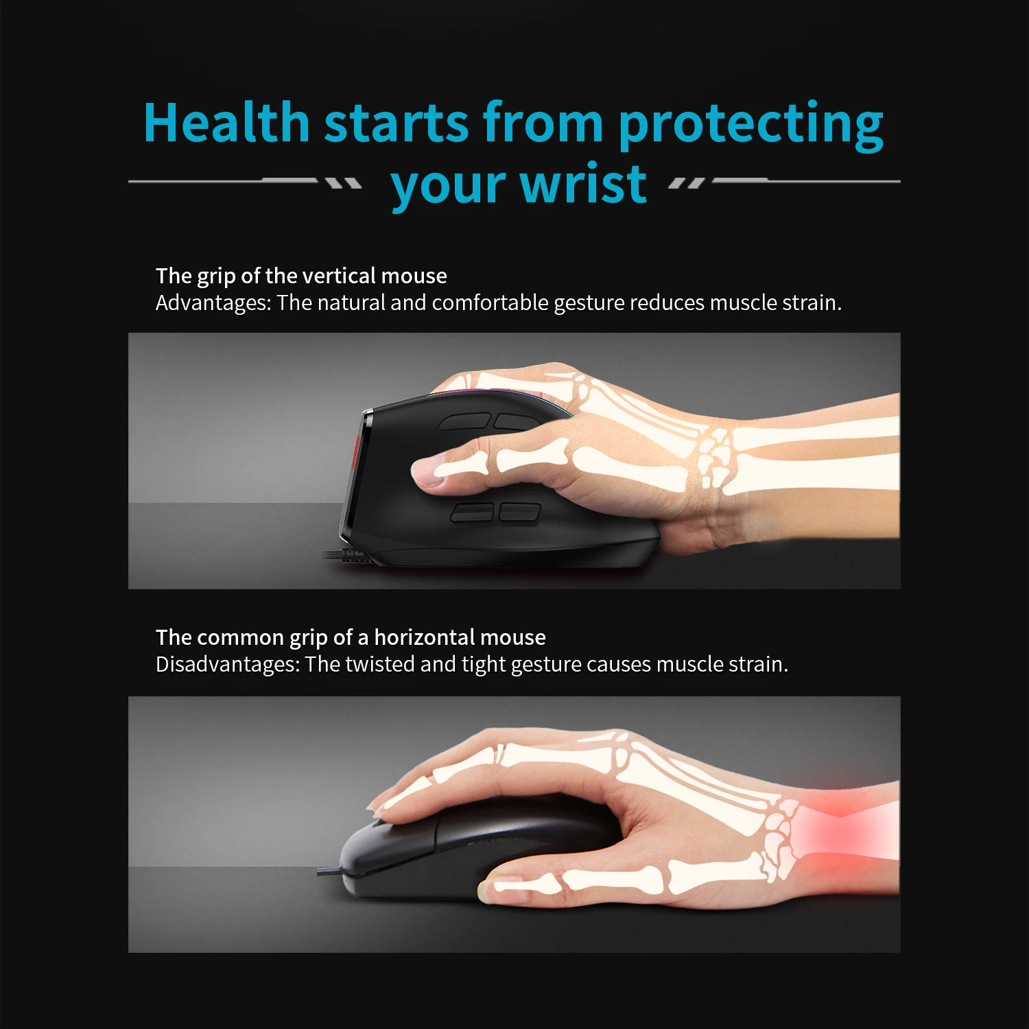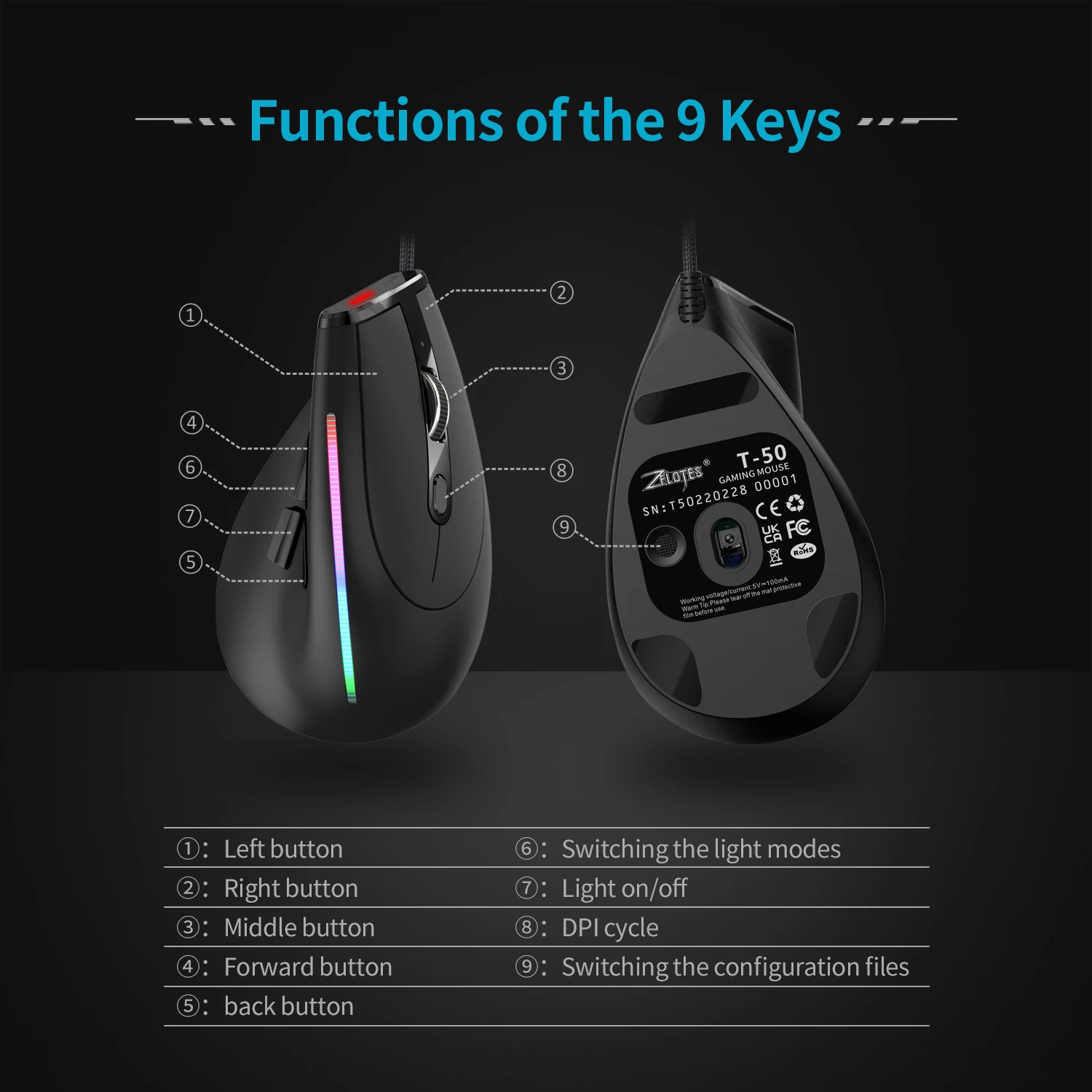 Comprar Lefon-ratón Vertical para juegos con cable, ergonómico, RGB, 9 botones, programable, óptico de 12800 DPI, para ordenador portátil, Pc y Gamer T50
