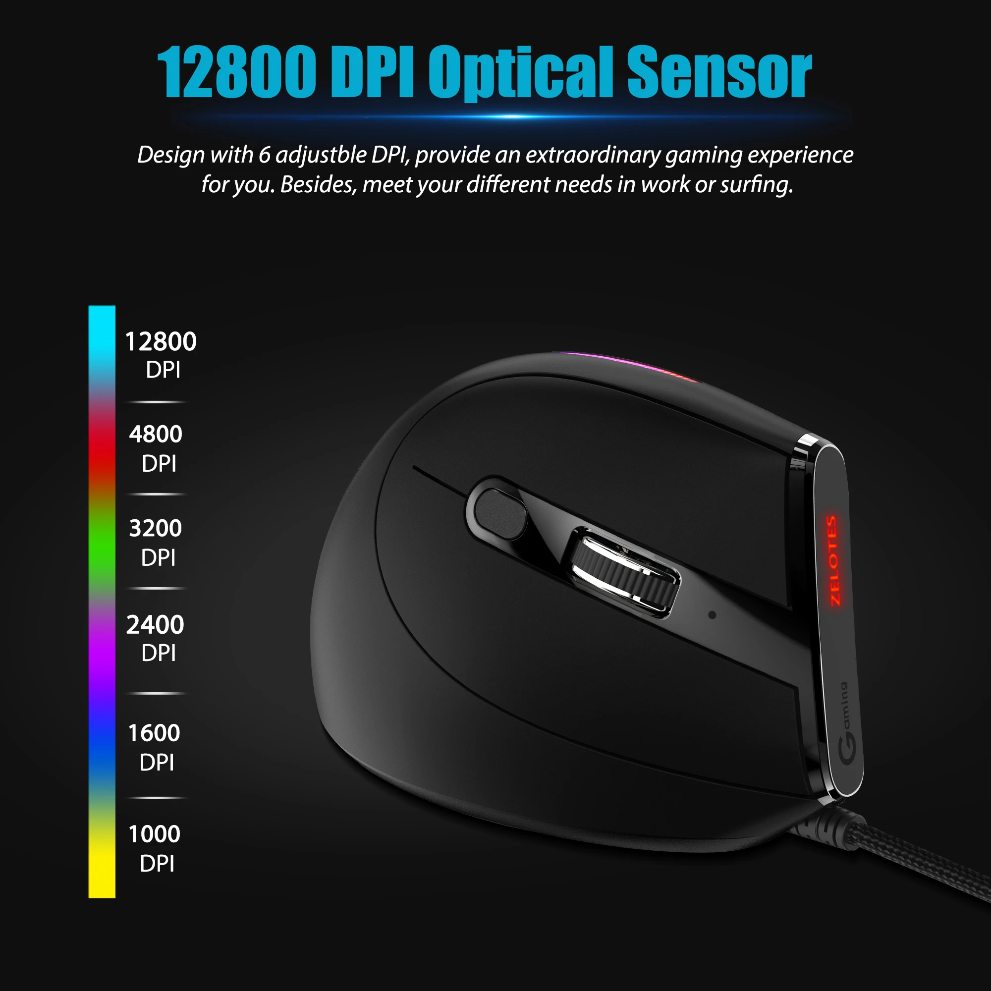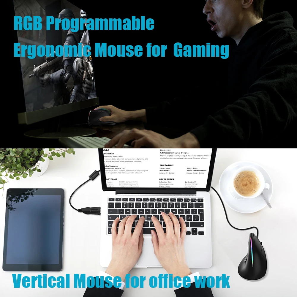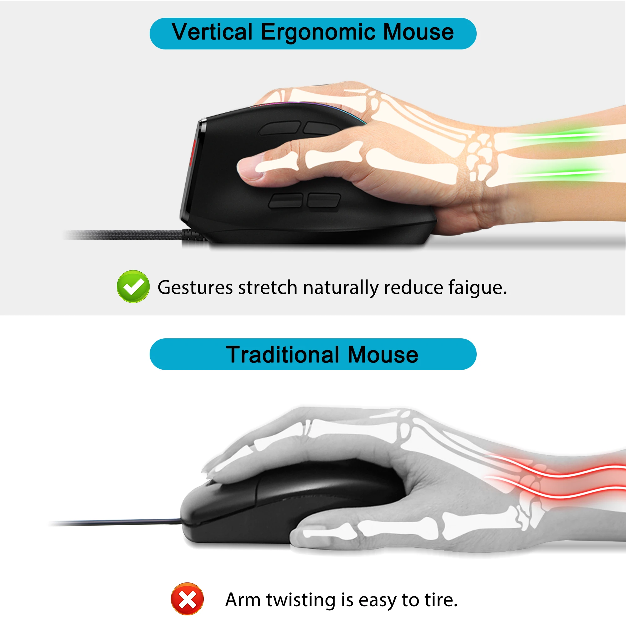 Comprar Lefon-ratón Vertical para juegos con cable, ergonómico, RGB, 9 botones, programable, óptico de 12800 DPI, para ordenador portátil, Pc y Gamer T50