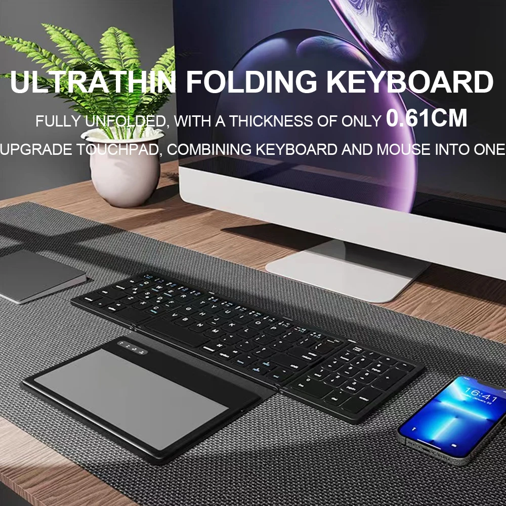 Teclado plegable inalámbrico Lefon con panel táctil, teclado Bluetooth de 81 teclas, teclado plegable delgado portátil para Windows IOS Android