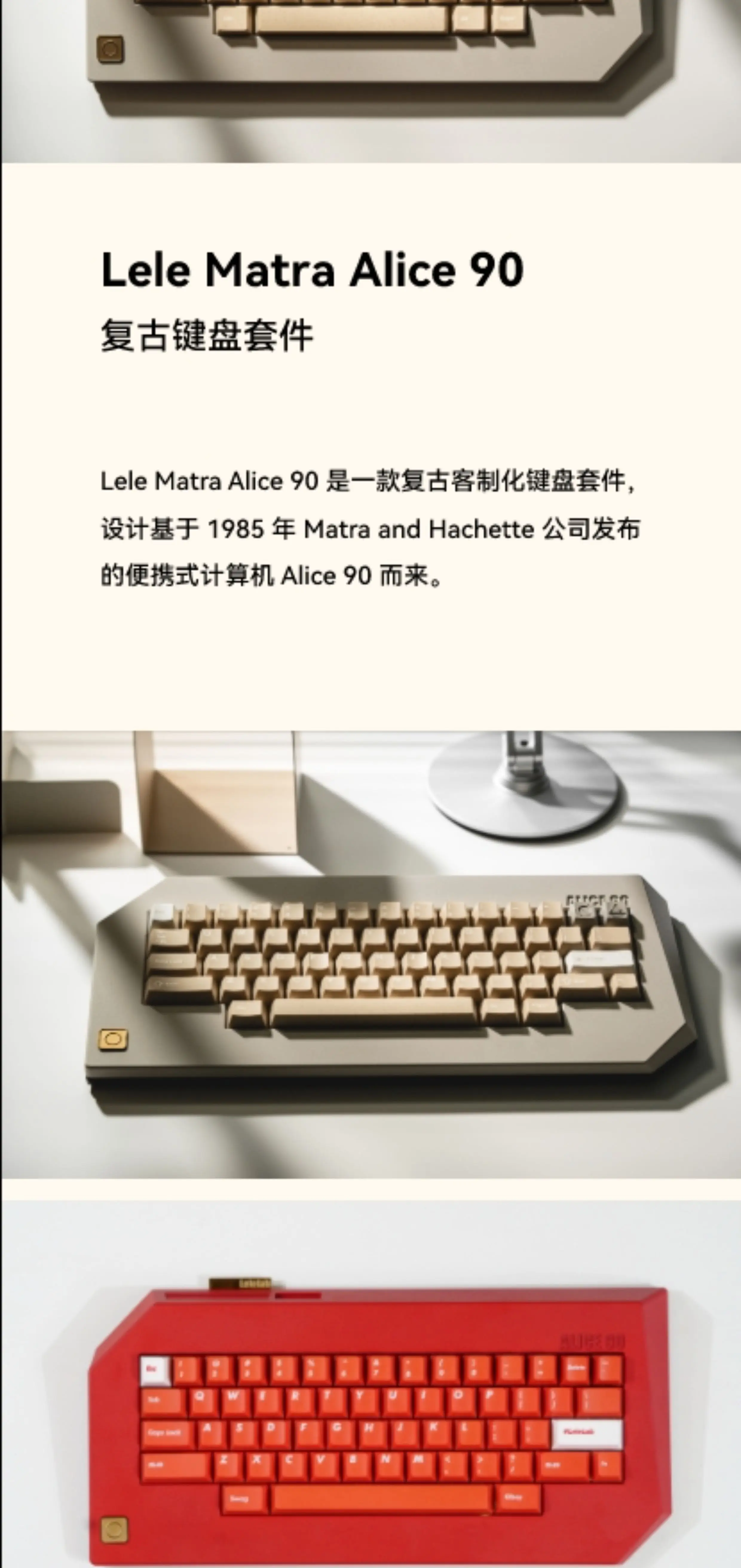El Lele Matra Alice 90 es un kit de teclado retro personalizado diseñado en base a la computadora portátil Alice90 lanzada por Matra y Hachette en 1985.