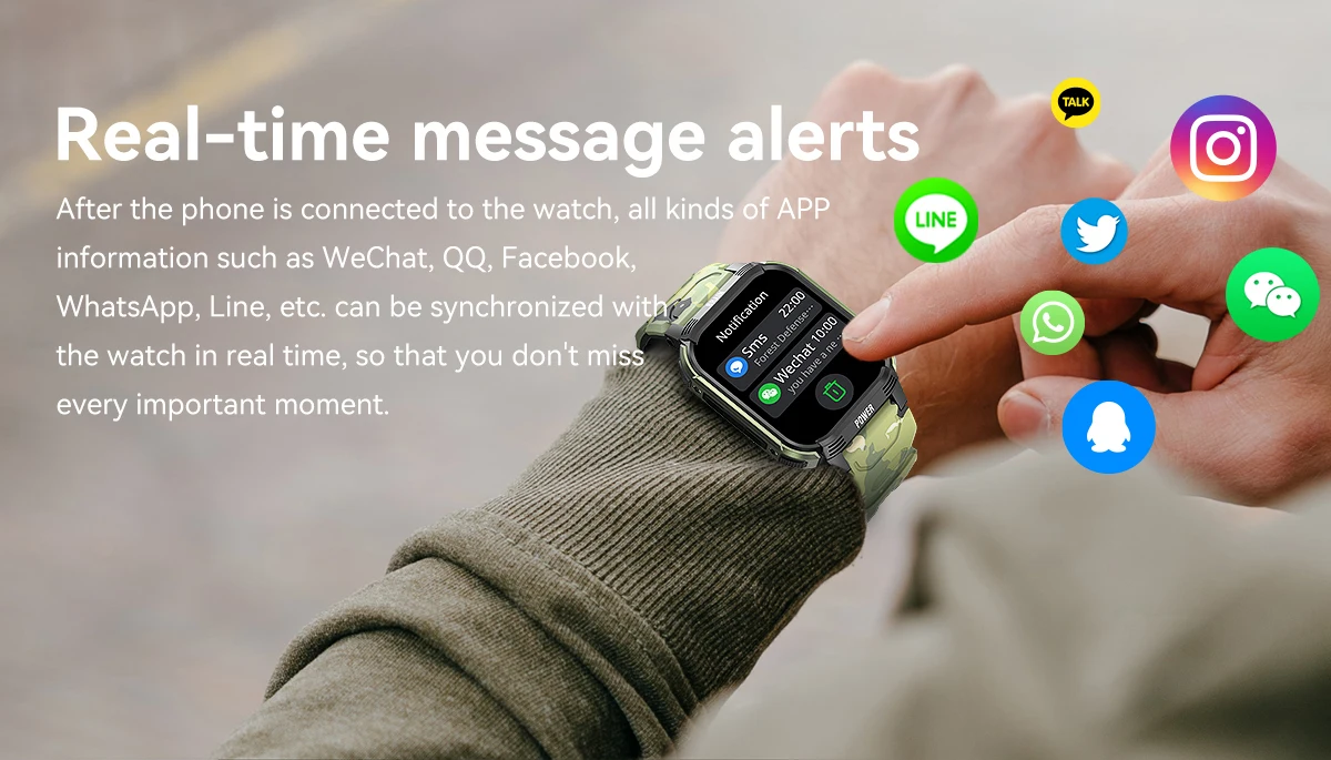Llamada entrante, SMS, correo electrónico, WeChat, QQ, Skype, WhatsApp, Facebook, Messenger, Linkedin, Twitter, LINE, lnstagram, Snapchat, Viber, Telegram, Kakao TaLK,