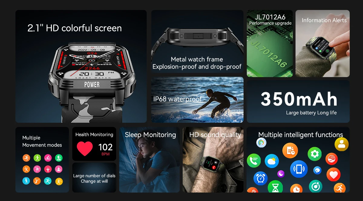 Comprar LEMFO-reloj inteligente para hombre, accesorio de pulsera resistente al agua IP68 con llamadas, Bluetooth, control del ritmo cardíaco, compatible con Android e IOS, 2024