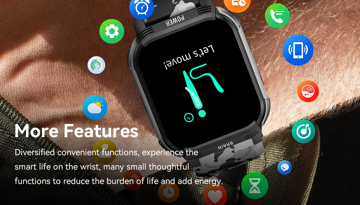 Actualización de firmware, barra de acceso directo (Centro de Control), datos (conteo de pasos, distancia, calorías), sueño, frecuencia cardíaca, oxígeno en sangre, monitoreo del sueño, gire la muñeca e ilumine la pantalla, clima, información, recordatorio (Mensaje, sedentario, despertador, horario), cronómetro, temporizador, Buscar teléfono móvil, buscar pulsera, interruptor de Dial, control de música, configuración (ajuste de brillo, reinicio de llamada, configuración de vibración, recuperación de fábrica, información de versión)