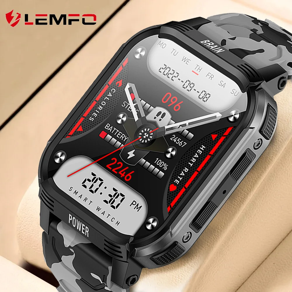 Comprar LEMFO-reloj inteligente para hombre, accesorio de pulsera resistente al agua IP68 con llamadas, Bluetooth, control del ritmo cardíaco, compatible con Android e IOS, 2024