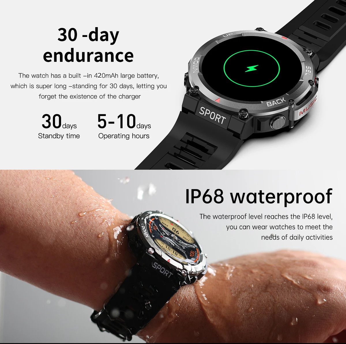 • Alta capacidad de batería: con una capacidad de batería de 420 mAh, este reloj inteligente ofrece energía duradera, lo que le permite mantenerse conectado y realizar un seguimiento de su salud por más tiempo.