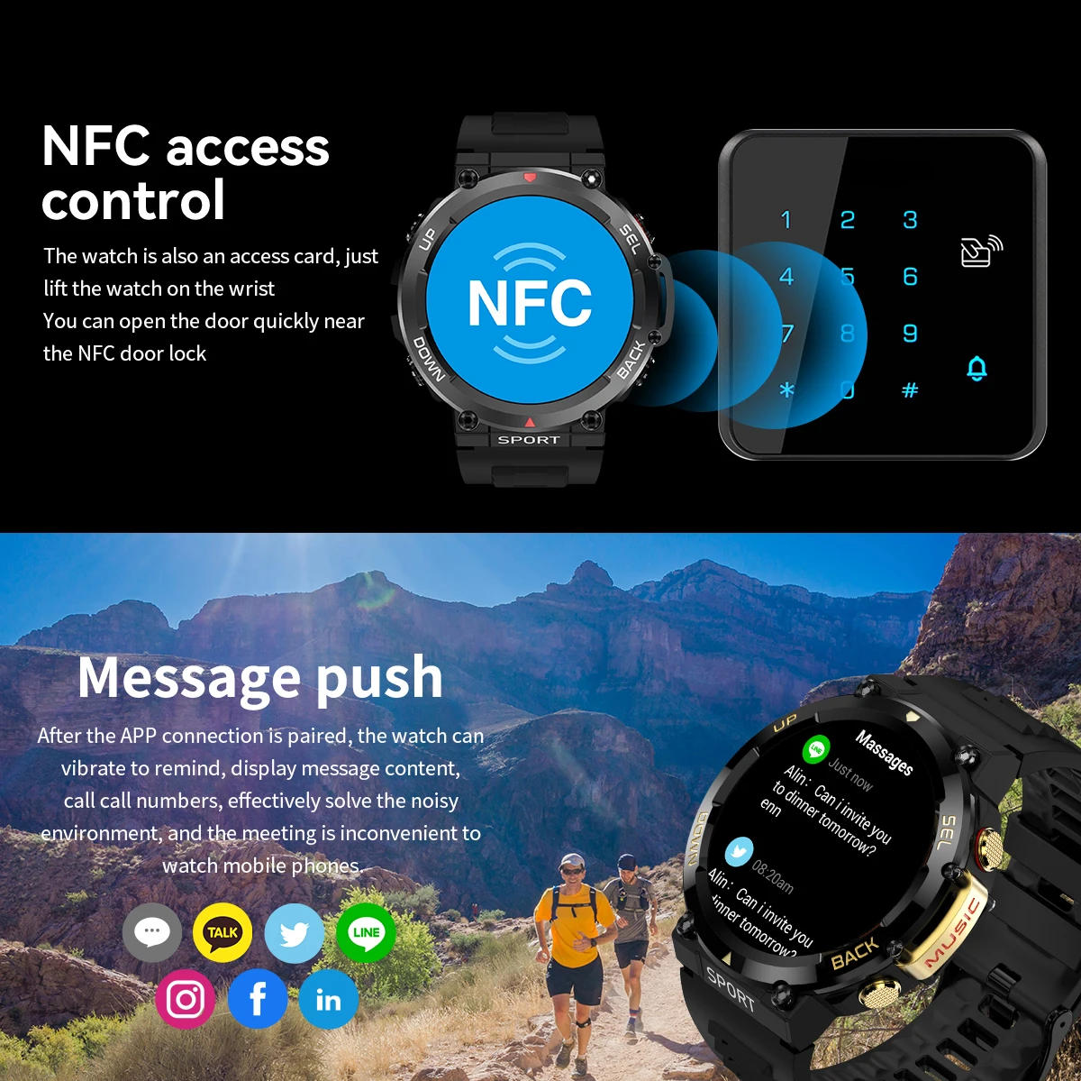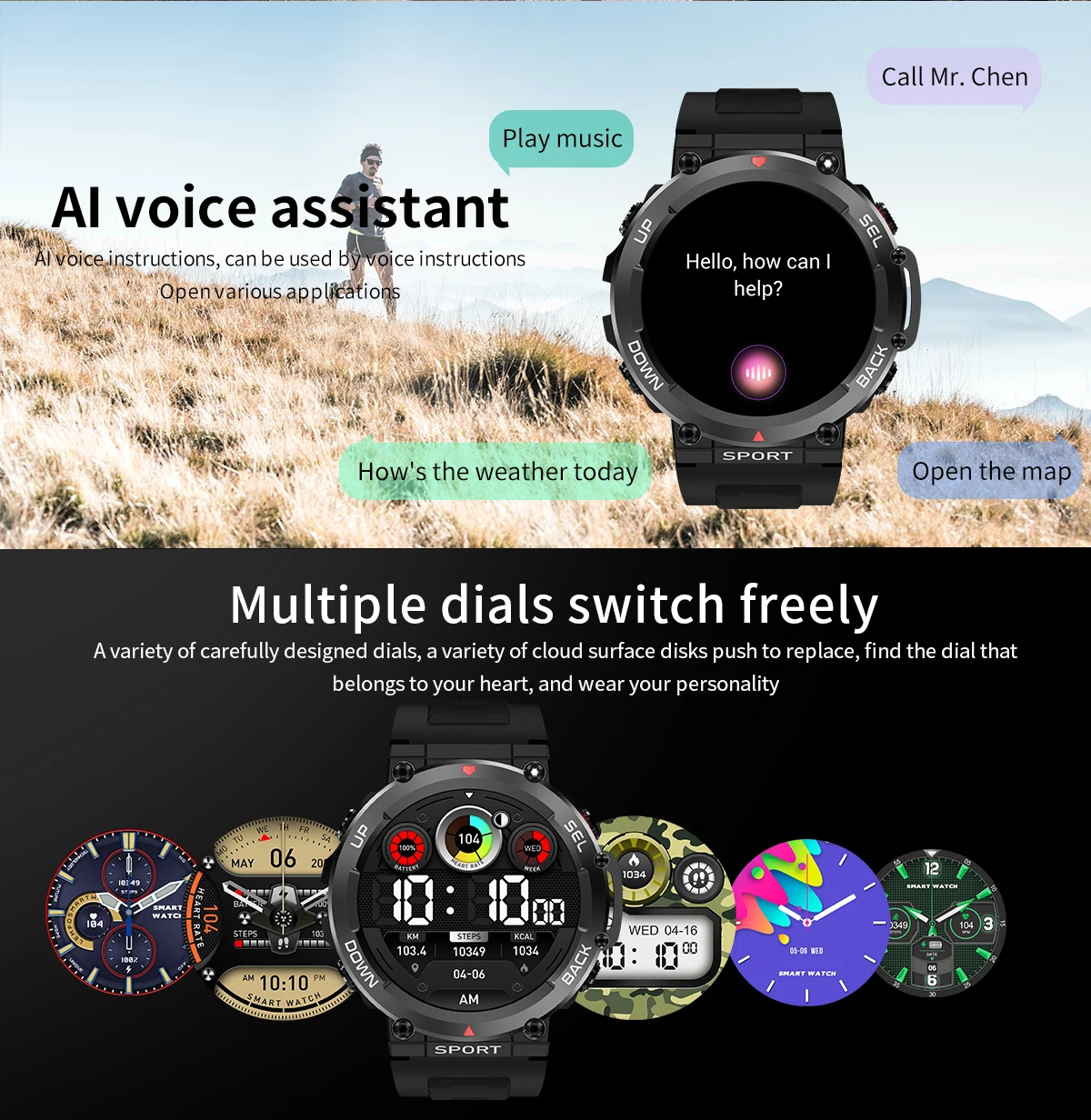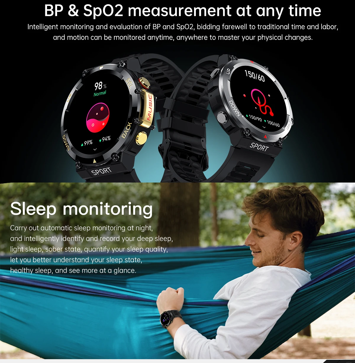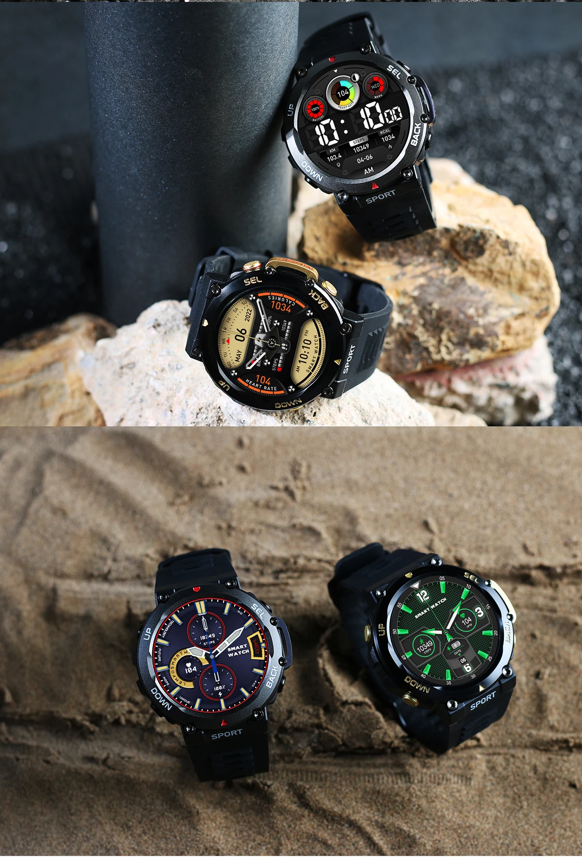 • Caja de acero deportiva: La caja de acero deportiva de este reloj inteligente agrega un toque de elegancia a su estilo al mismo tiempo que brinda durabilidad y protección.