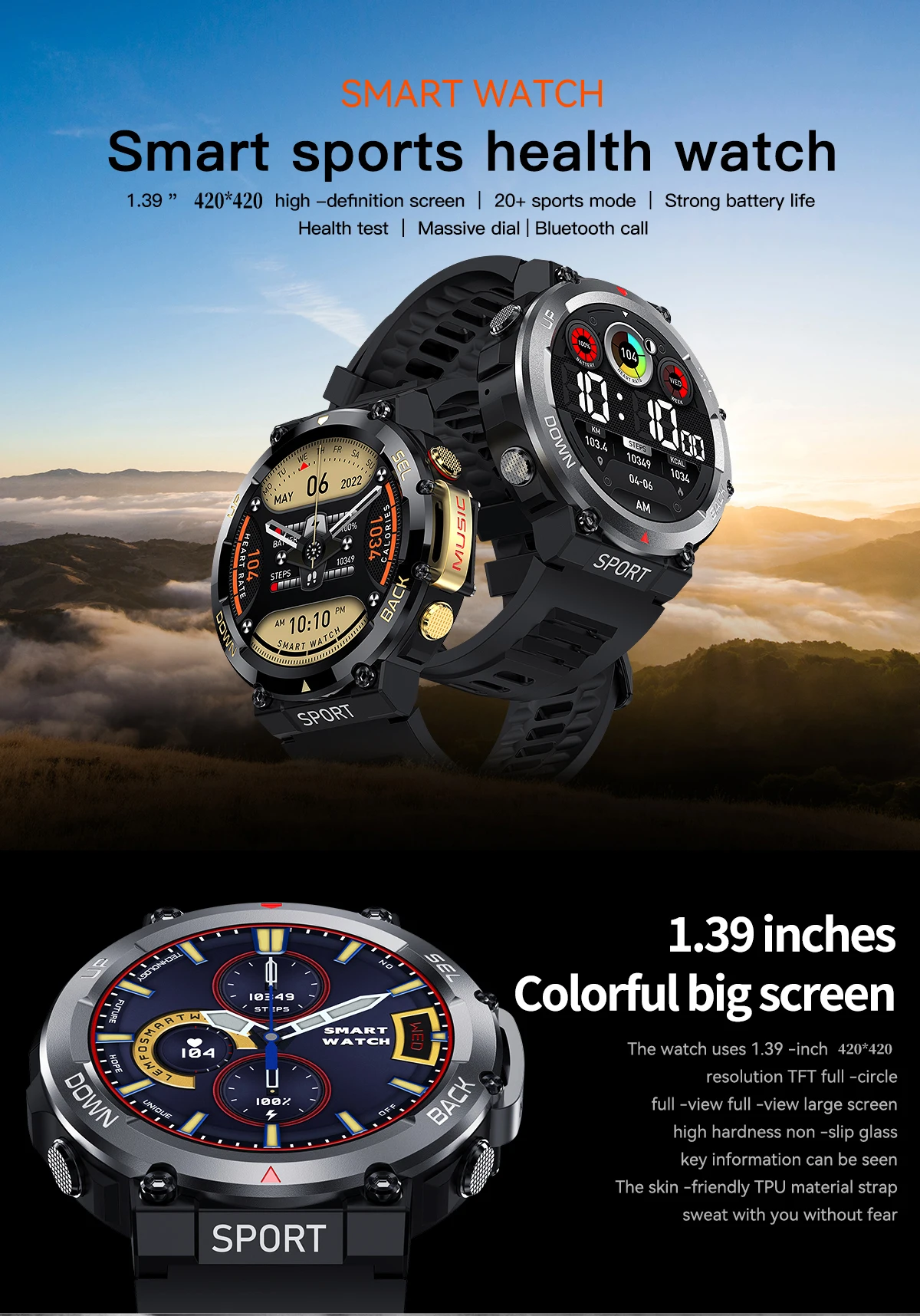 Reloj inteligente LEMFO para hombre, pantalla HD de 1,39 pulgadas, 420x420, IP68, resistente al agua, Bluetooth, llamada, reproducción de música, deporte, 420mah, LF33, reloj inteligente para hombre 2024