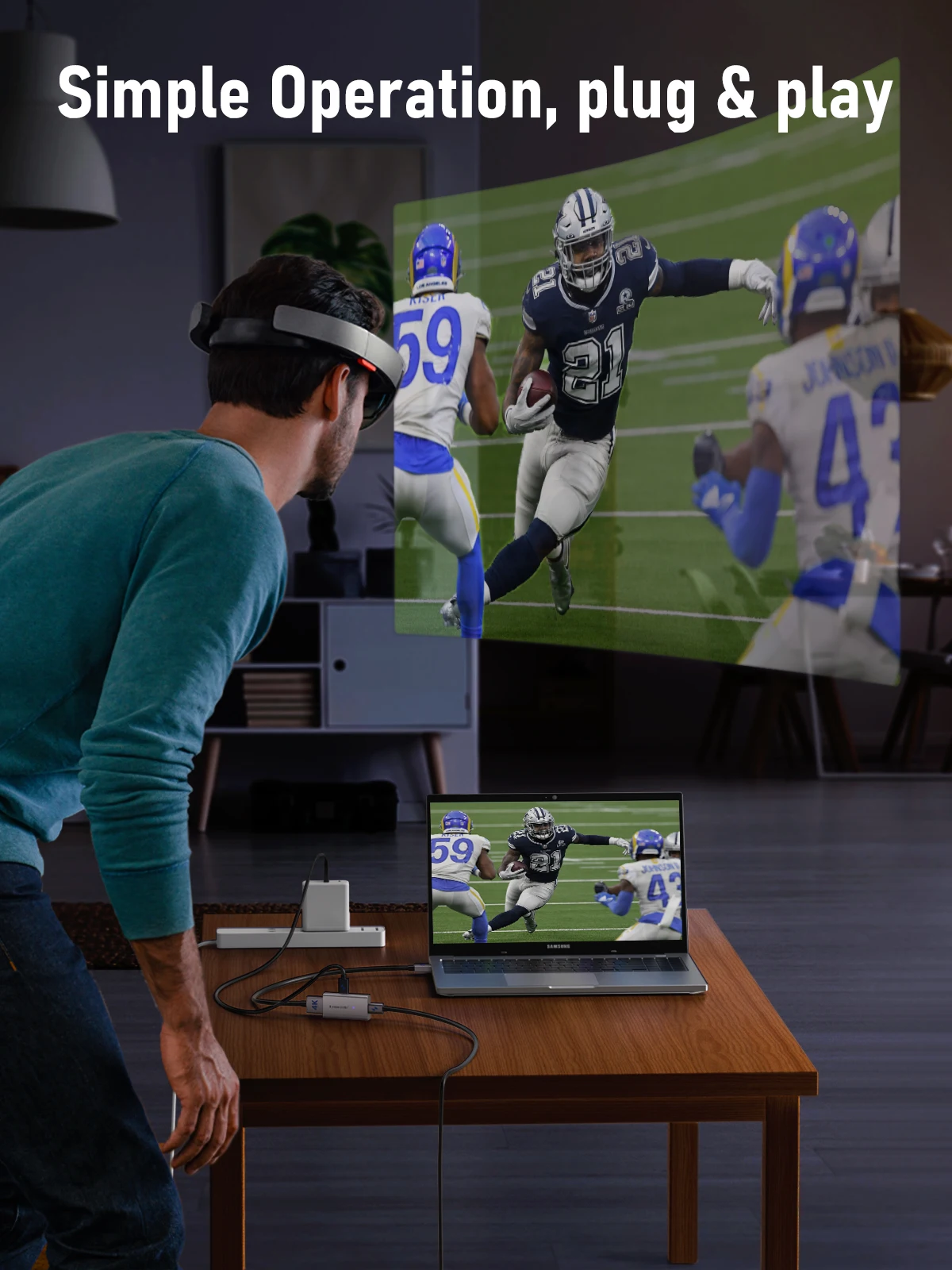 1 puerto USB tipo C, admite salida de datos de video 4K @ 60Hz, compatible con Nreal Air, Rokid Air, Thunderbird AR, GRAWOOW y otras gafas AR, la imagen definitiva, color y suavidad, brindando una experiencia visual inmersiva.