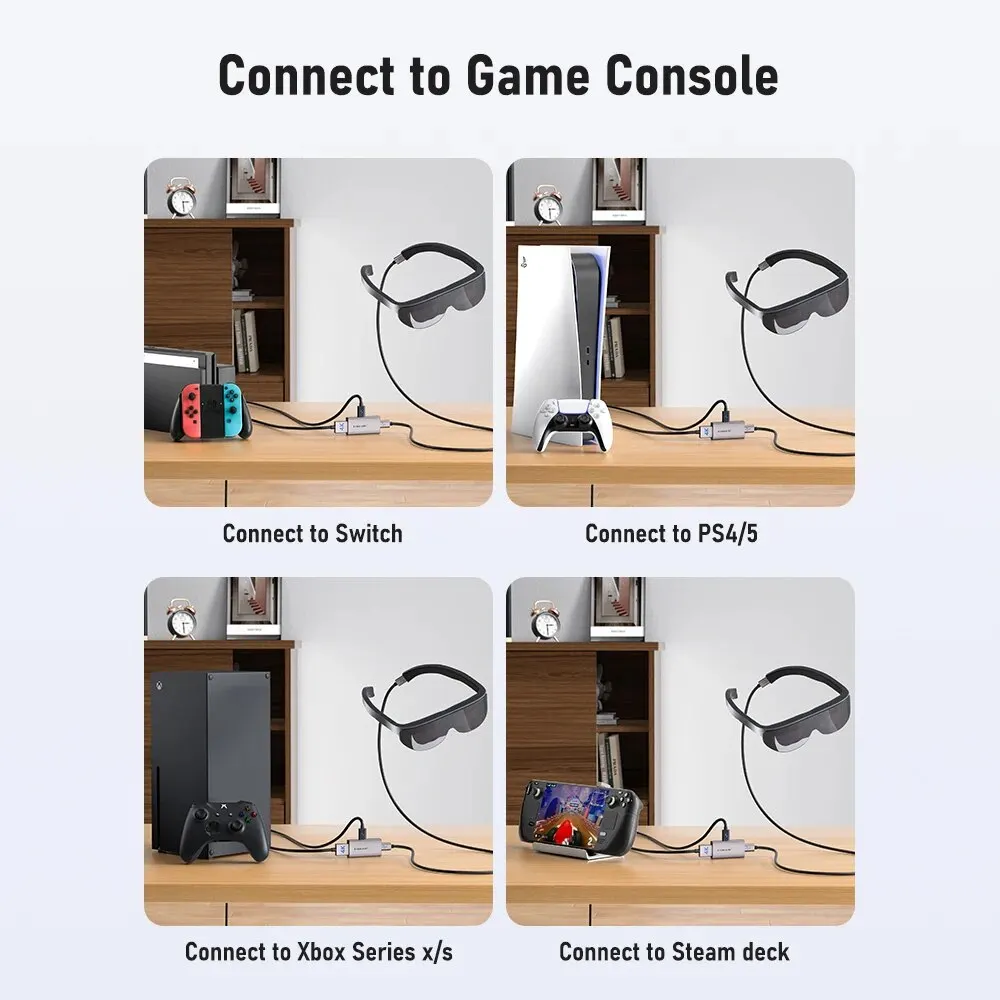 Este adaptador Lemorelle HDMI a USB-C es compatible con Nreal Air, Rokid Air, RayNeo, GRAWOOA y otras gafas AR, y es compatible con muelles de conmutación, PS4, PS5, Xbox, Y otras consolas de juegos convencionales, adecuadas para una variedad de productos portátiles y pantallas con interfaz USB-C.