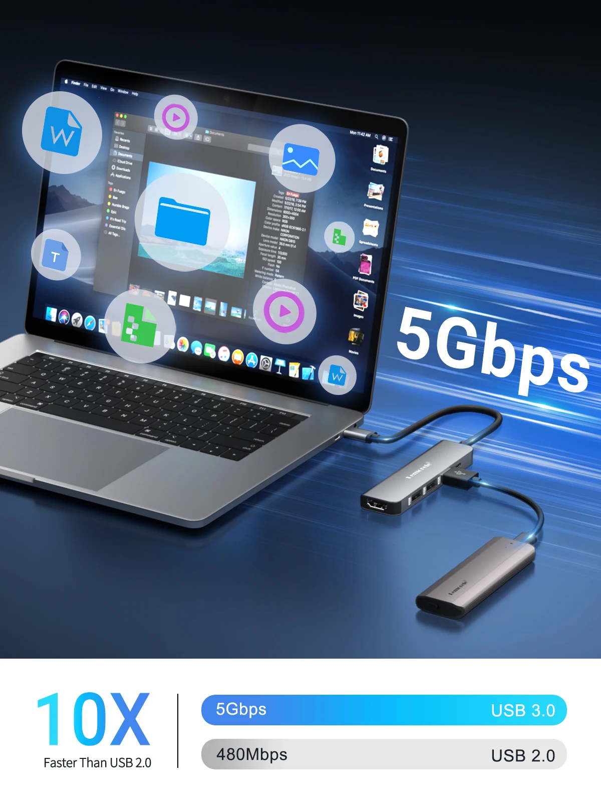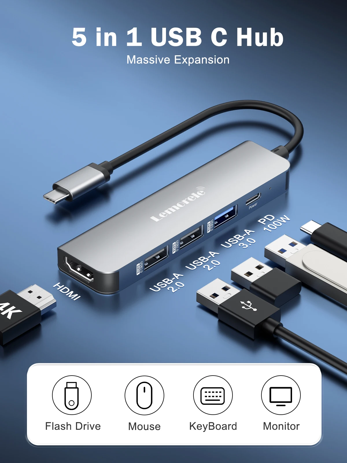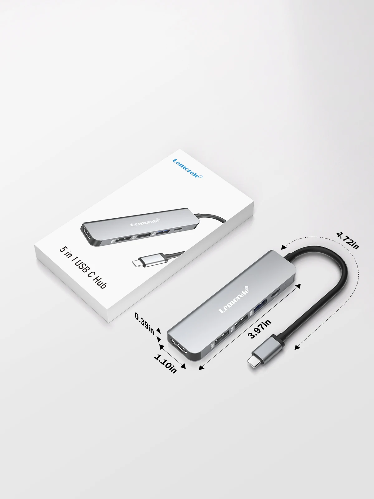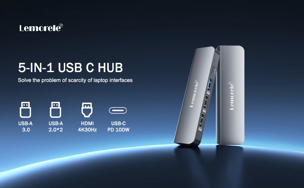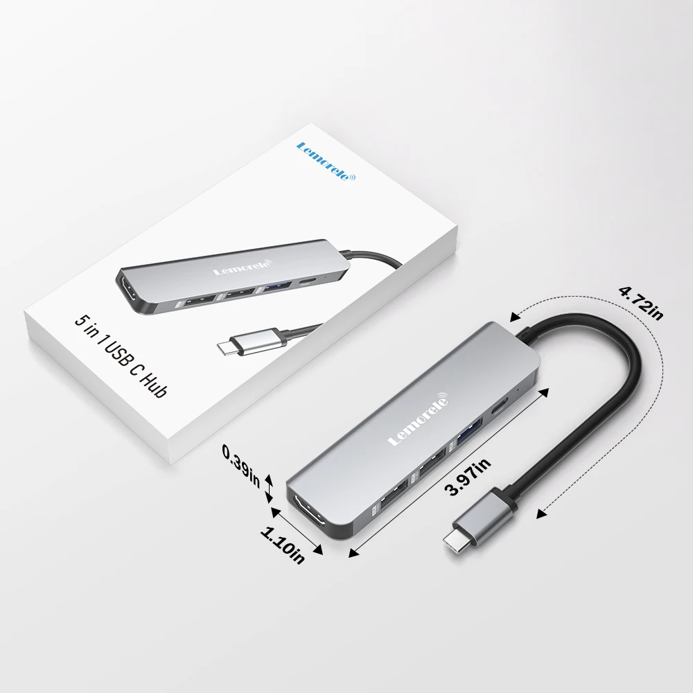 Comprar Lemorele-Hub USB C 3,0, estación de acoplamiento de 5 puertos, concentrador tipo C 4K30Hz, adaptador USB 3,0 compatible con HDMI para Macbook Air M1 iPad
