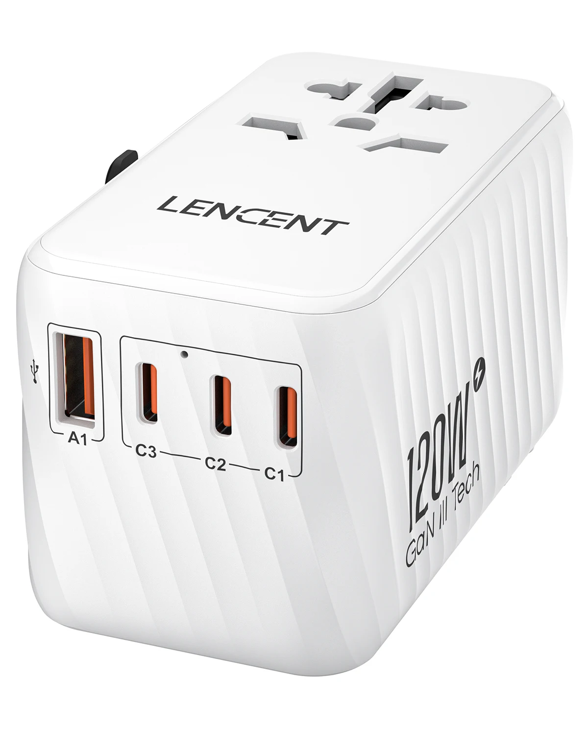 Comprar LENCENT Adaptador de viaje internacional GaN de 120 W, cargador rápido con 1 puerto USB y 3 tipos C, adaptador de corriente todo en uno para viajes