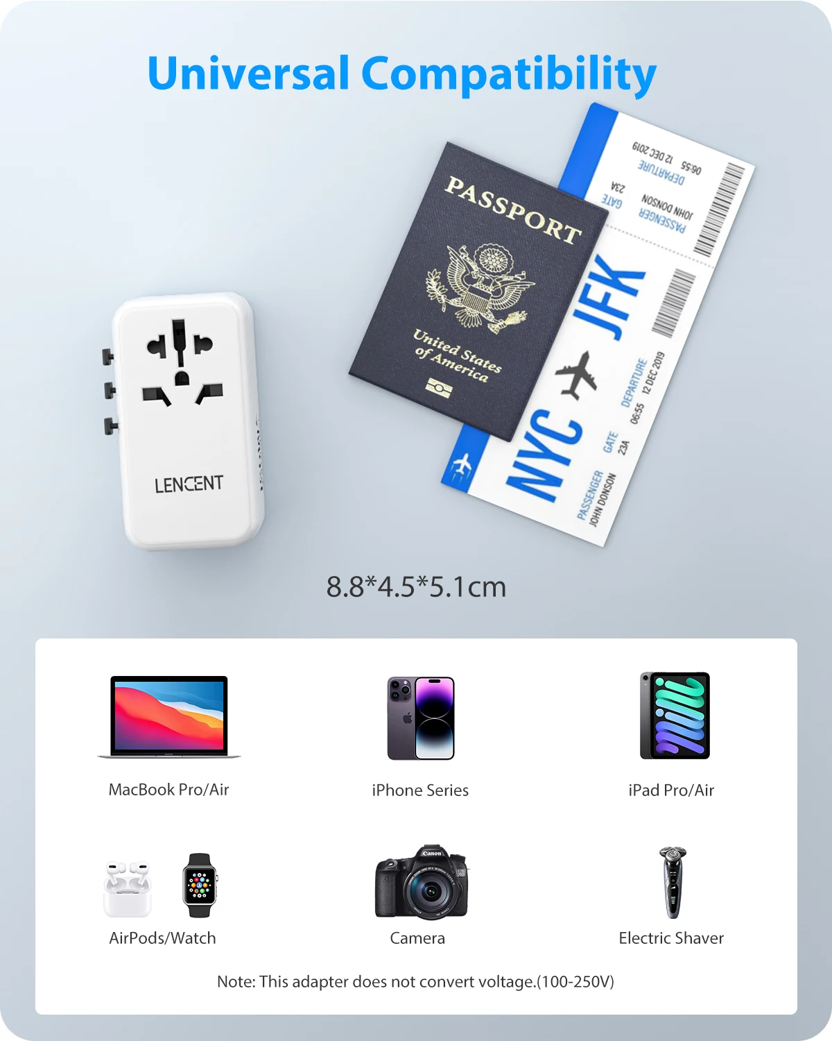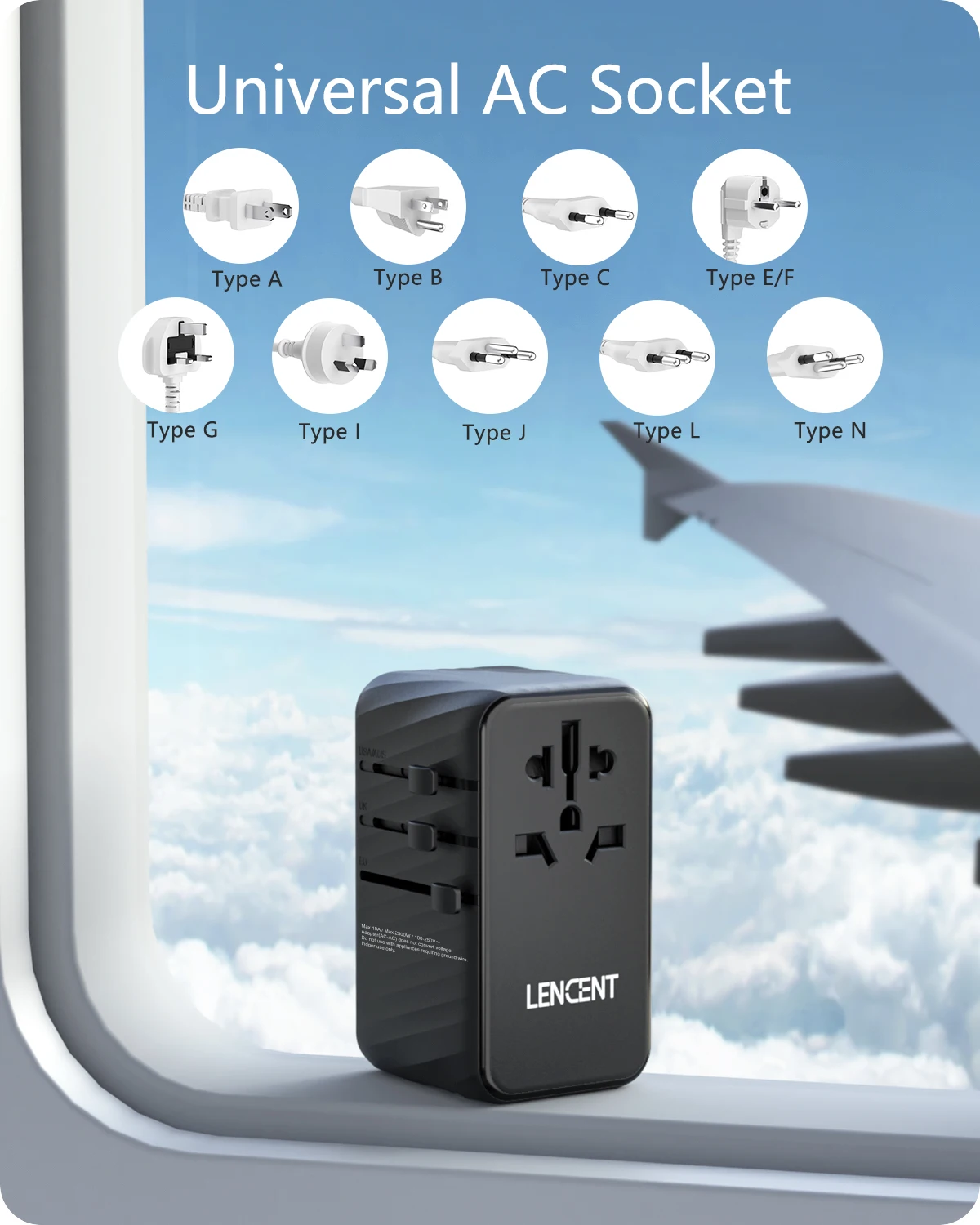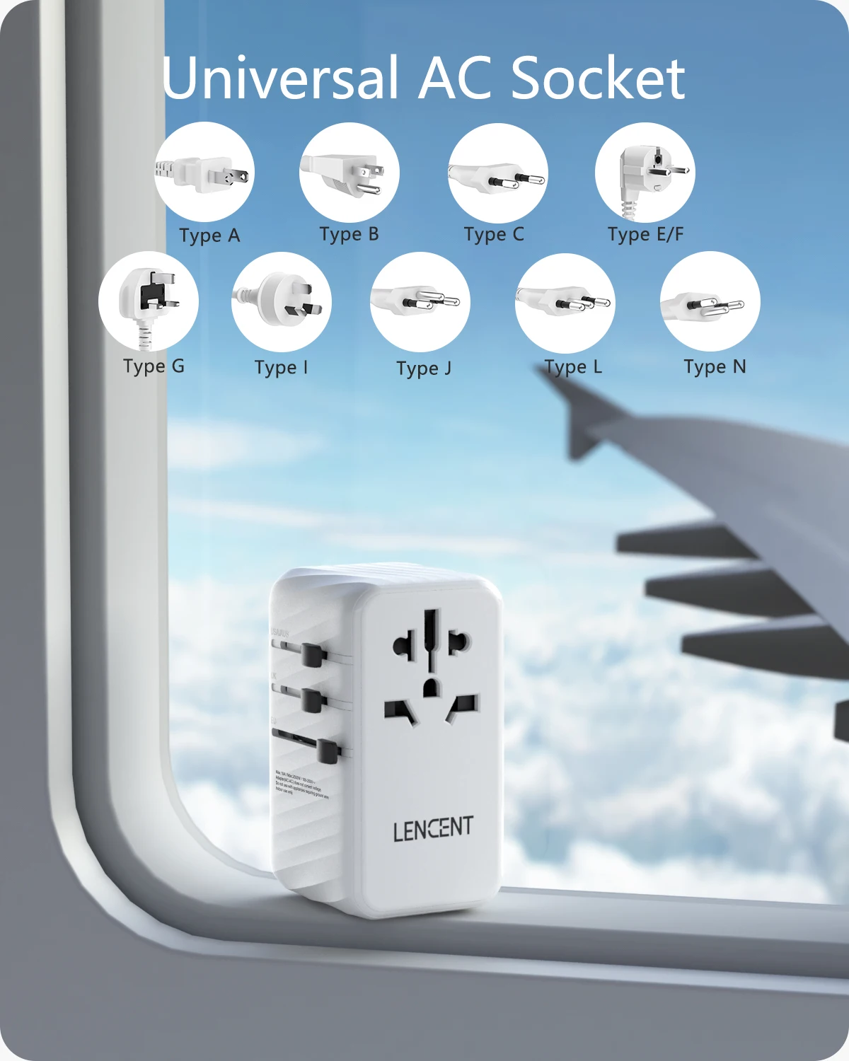 El adaptador de enchufe universal diseñado 5 en 1 se puede utilizar en más de 200 países, como Australia, Canadá, China, Europa, Japón, Reino Unido, EE. UU. Y Nueva Zelanda. El adaptador de viaje de LENCENT acepta enchufes de las siguientes especificaciones: Tipo B/Tipo E/Tipo F/Tipo G/Tipo I. (No apto para Dinamarca, Italia, Israel, India o Sudáfrica).